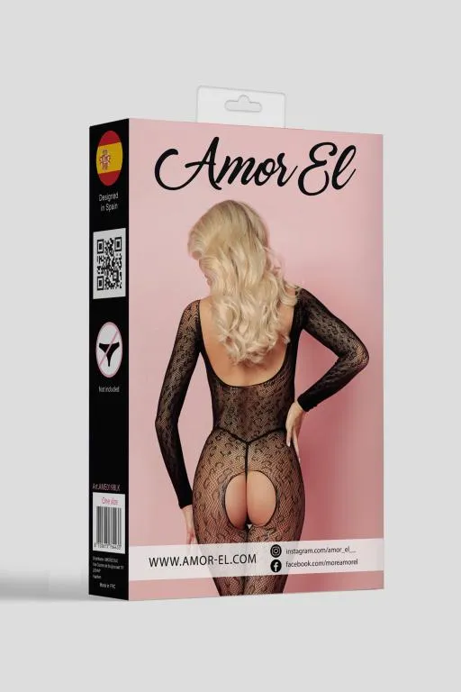 Боди-комбинезон с рукавами 3/4 и открытым доступом. Дизайн выполнен в виде сетки с кружевным леопардовым рисунком. Его можно носить как полностью на плечах, так и приспустить на руки.