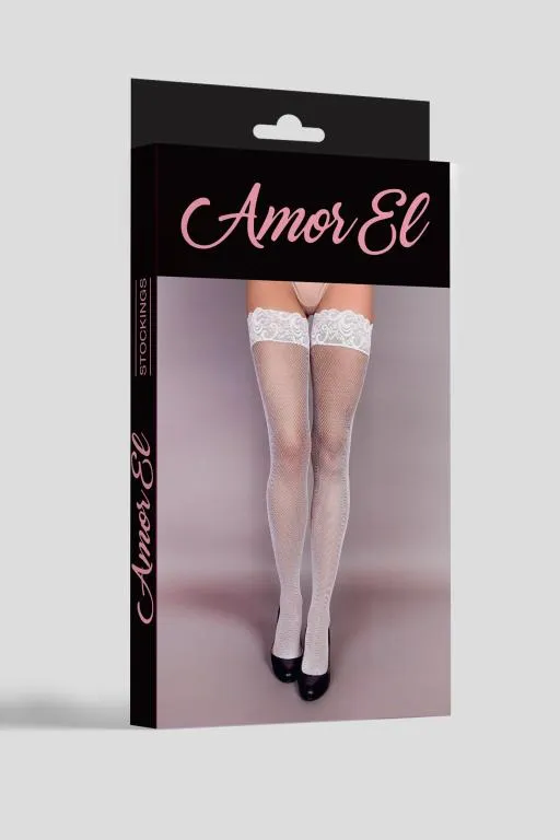 Чулки с в мелкую сетку, сверху украшены кружевной резинкой на силиконе. Сзади чулки имеют оригинальный рисунок. Плотность эквивалентна 20 ден. Благодаря использованию большего количества нейлона, белье сохраняет очертания, не деформируется, растягивается и выгодно облегает фигуру. А за счет эластана, даже после сильного растяжения, оно не деформируются, и всегда принимает исходную форму.