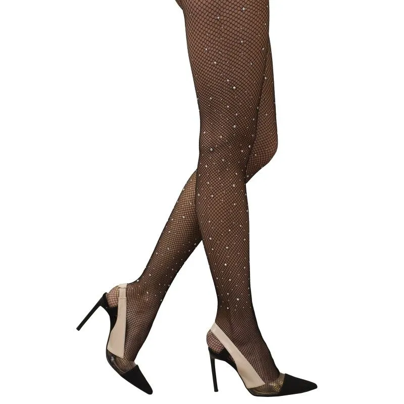 Настоящая соблазнительница и покорительница мужских сердец, должна не только уметь обаять мужчину, но и сделать это с особым умением и шиком. И несомненно, что в этом ей обязательно помогут эти сетчатые колготки со стразами, в которых она будет блистать и сиять в любом месте, где бы она не появилась! Колготки украшены сверкающими стразами, привлекающими особое внимание к вашему образу, и соответственно персоне. Они идеально подойдут к большинству вечерних, повседневных, или эротических нарядов, сделав их максимально соблазнительными и оригинальными.