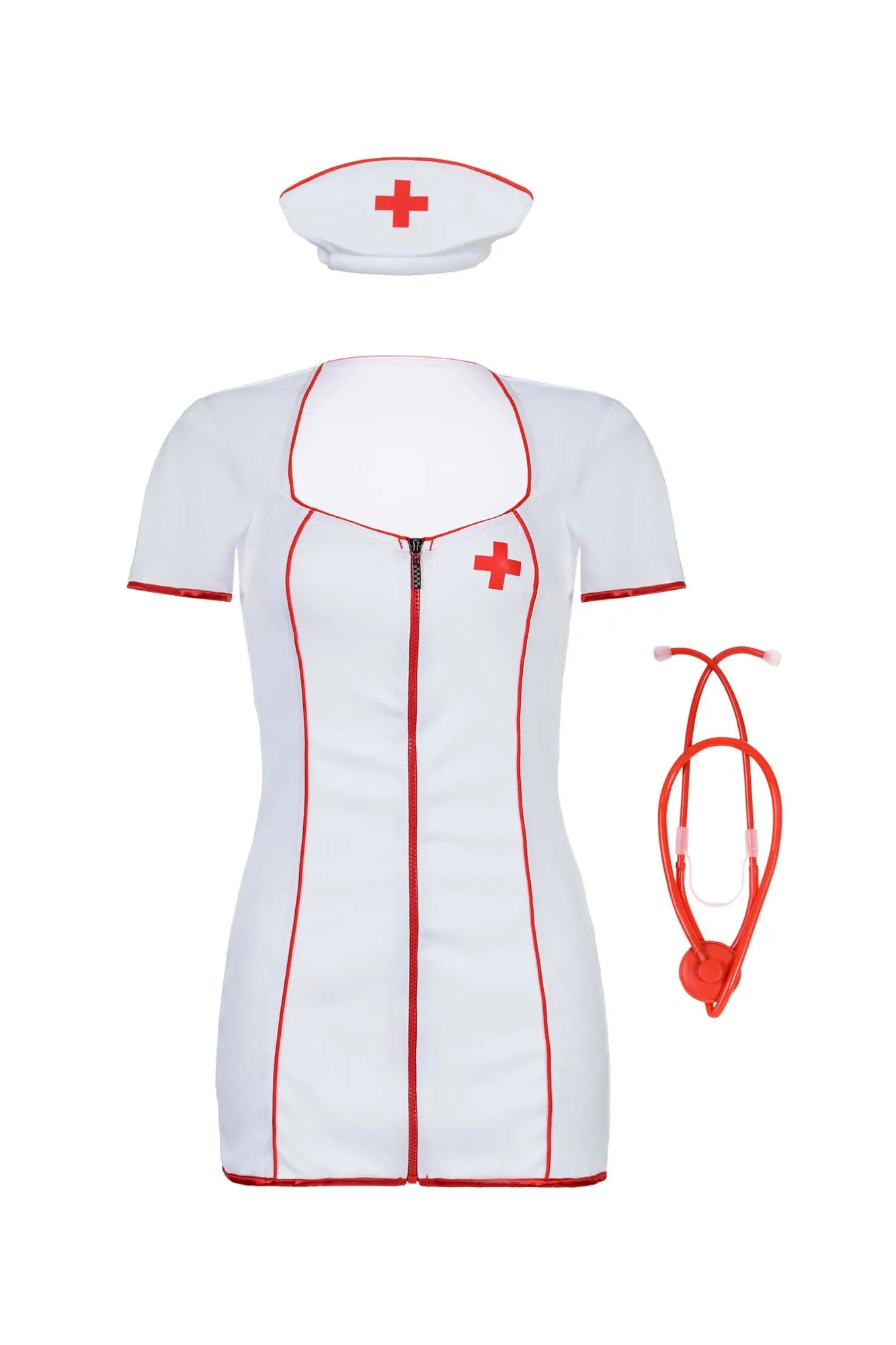 Мечты о том, чтобы сексапильный доктор назначил нужное «лечение» могут стать реальностью. Ведь этот костюм создан специально для того, чтобы воплощать такие сексуальные фантазии на высшем уровне. Коротенькое белое платьице на красной молнии с глубоким вырезом, милая шапочка, пикантные стринги и даже статоскоп — в этом костюме продумано всё до мелочей! Пришло время немного «поболеть»!