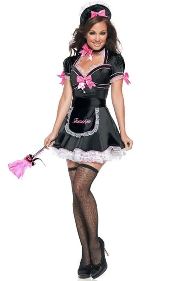 Костюм горничной "Frenchie kiss" от компании Le Frivole смотрится необычайно эротично и привлекательно! Платье с короткими рукавами-фонариками и кружевным подъюбником, декорированное пикантными бантиками розового цвета будет смотреться на Вас невероятно соблазнительно. А черный фартук и игривый чепчик на голову сделают Ваш образ романтичным и милым. Вечер с такой очаровательной служанкой обещает много приятных моментов и надолго останется в памяти Вашего мужчины!