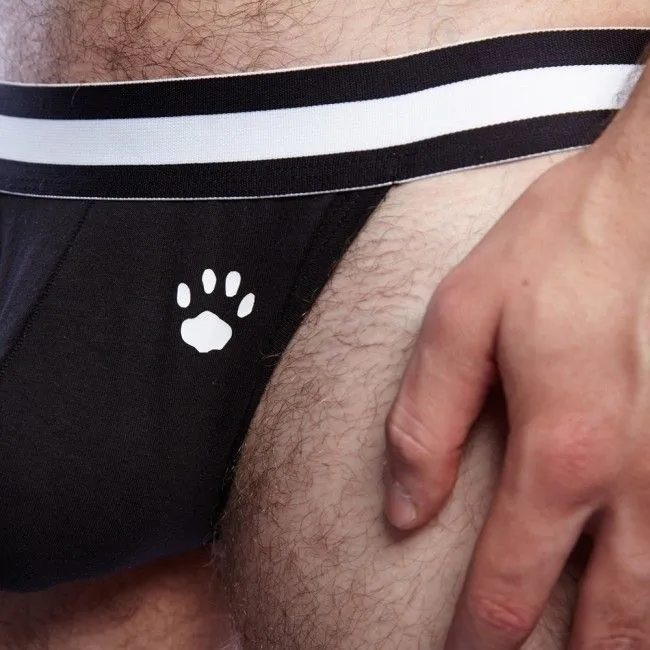 Мужские трусы-джоки от бренда Prowler сделаны из мягкого хлопка черного цвета и декорированы фирменным принтом в виде лапки. Широкая резинка с контрастной белой полоской добавит образу стильности. Трусы с таким фасоном придадут любому мужчине эротичности и сексуальности за счет открытых ягодиц и плотного облегания материала. Эластичные резинки сзади приподнимут ягодицы и сделают их более округлыми. Надеть их можно во время романтической ночи, чтобы удивить свою вторую половинку пикантным видом.