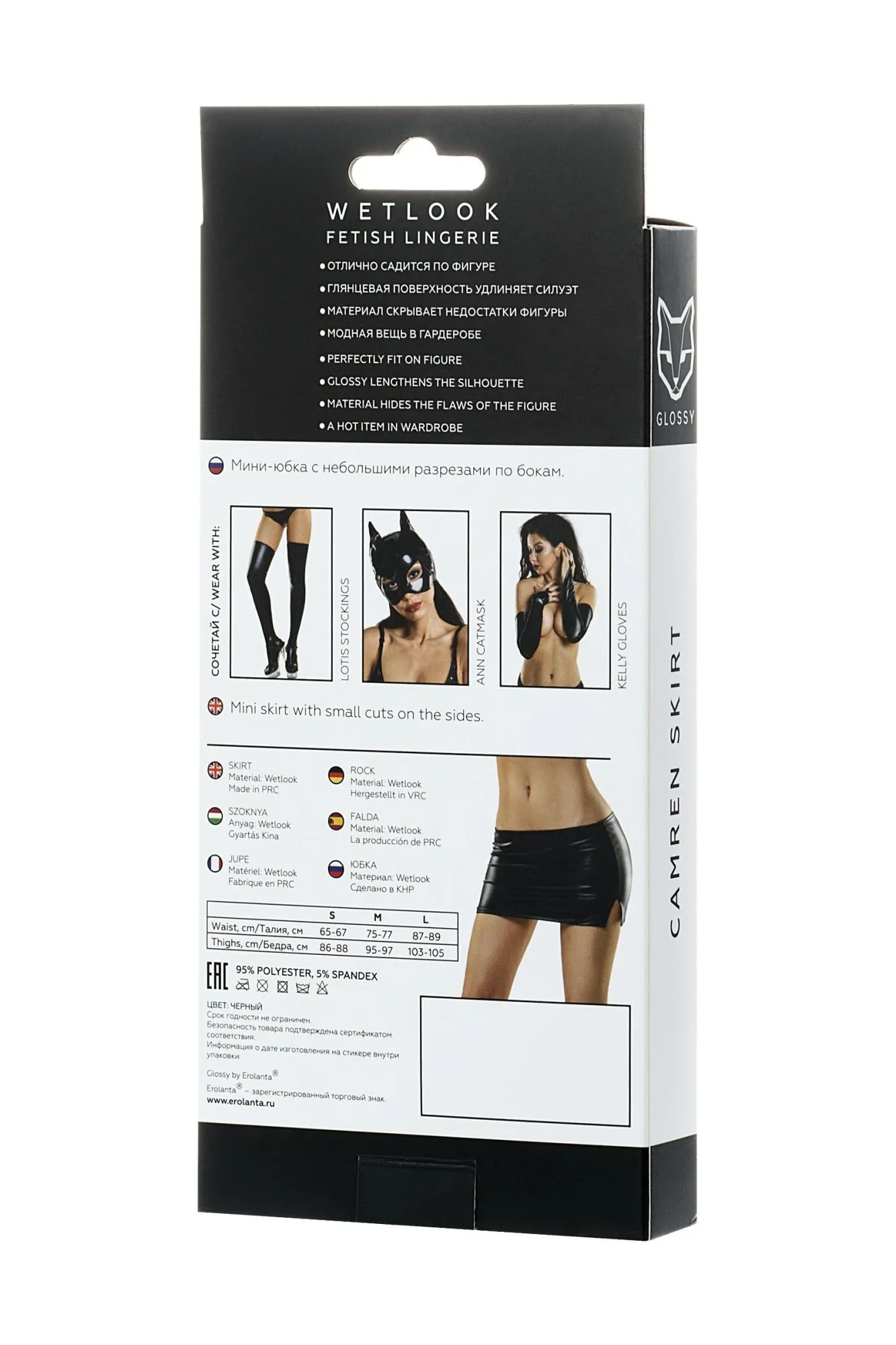 Встречайте новую, долгожданную и блестящую коллекцию белья из популярного материала Wetlook – Glossy. WETLOOK: Отлично садится по фигуре; Глянцевая поверхность визуально удлиняет силуэт; Плотный материал скроет мелкие недостатки фигуры; Модная вещь в сексуальном и базовом гардеробе. Мини-юбка с небольшими разрезами по бокам. Заниженная талия и притягательный блеск мокрой кожи сексуально обтягивает ягодицы. Минимальная длина откроет ножки и подчеркнет их длину.