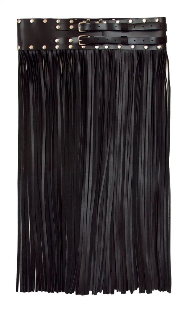 Черная юбка выполнена из натуральной кожи и регулируется по размеру при помощи ремней с пряжками. Юбка придаст Вашему образу сексуальности и соблазнительности, ведь при каждом Вашем шаге бахрома из кожи будет волнующе обнажать Ваши ножки. Ее можно носить как поверх шорт, другой юбки или боди для придания образу большей выразительности и особого шарма или же на голое тело во время ролевых игр с партнером. Экспериментируйте, пробуя сочетать юбку с различными аксессуарами и вещами из своего гардероба для создания своего уникального стиля.