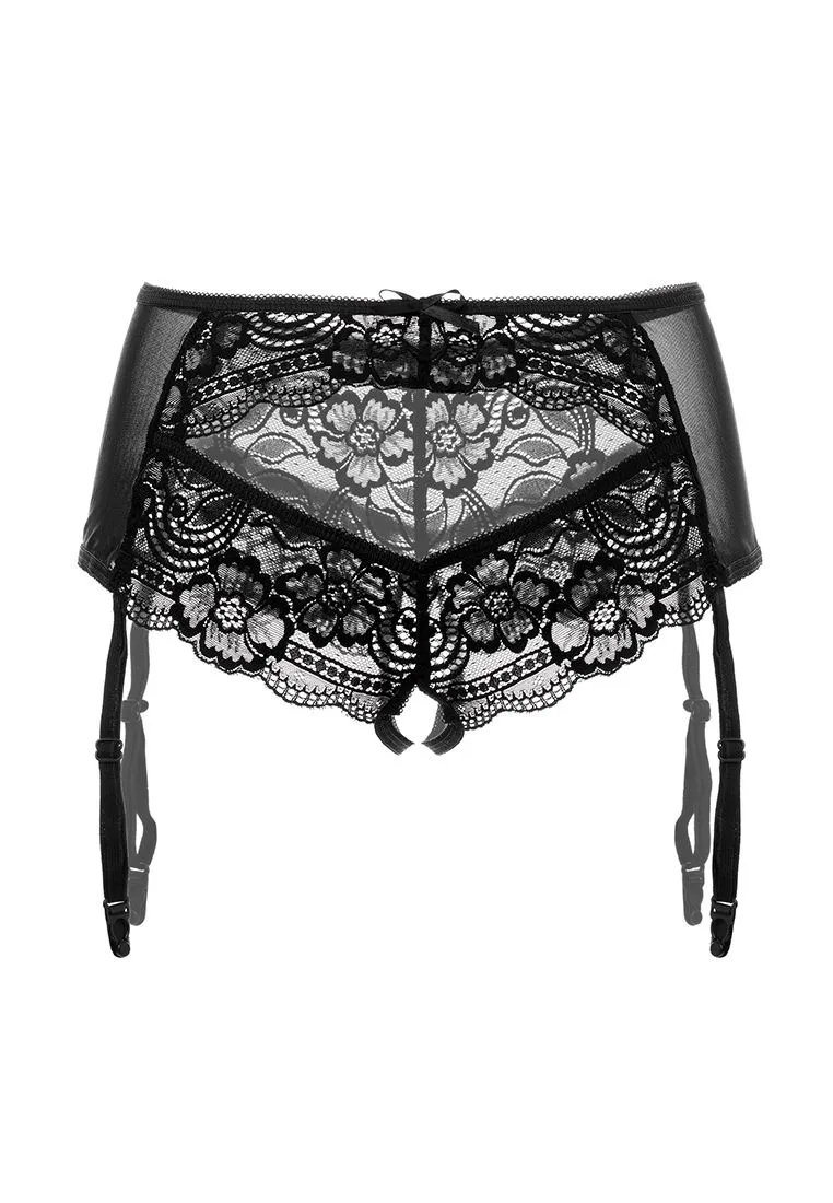 Эротические трусики-пояс Erolanta® Sheila, эластичные, из стрейч-сетки со сложными кружевными вставками, с вырезом сзади, без боковых швов, с атласными бантиками. Съемные регулируемые пажи. *Допускается замена кружева на аналогичное. Чулки в комплект не входят. На видео трусики Erolanta® Sheila дополнены идеально сочетающимся бралетт Erolanta® Marisa.