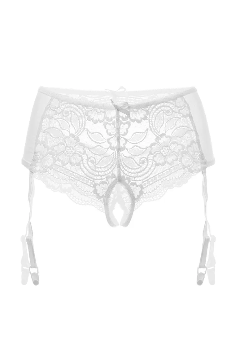 Эротические трусики-пояс Erolanta® Sheila, эластичные, из стрейч-сетки со сложными кружевными вставками, с вырезом сзади, без боковых швов, с атласными бантиками. Съемные регулируемые пажи. *Допускается замена кружева на аналогичное. Чулки в комплект не входят. На видео трусики Erolanta® Sheila дополнены идеально сочетающимся бралетт Erolanta® Nelly.