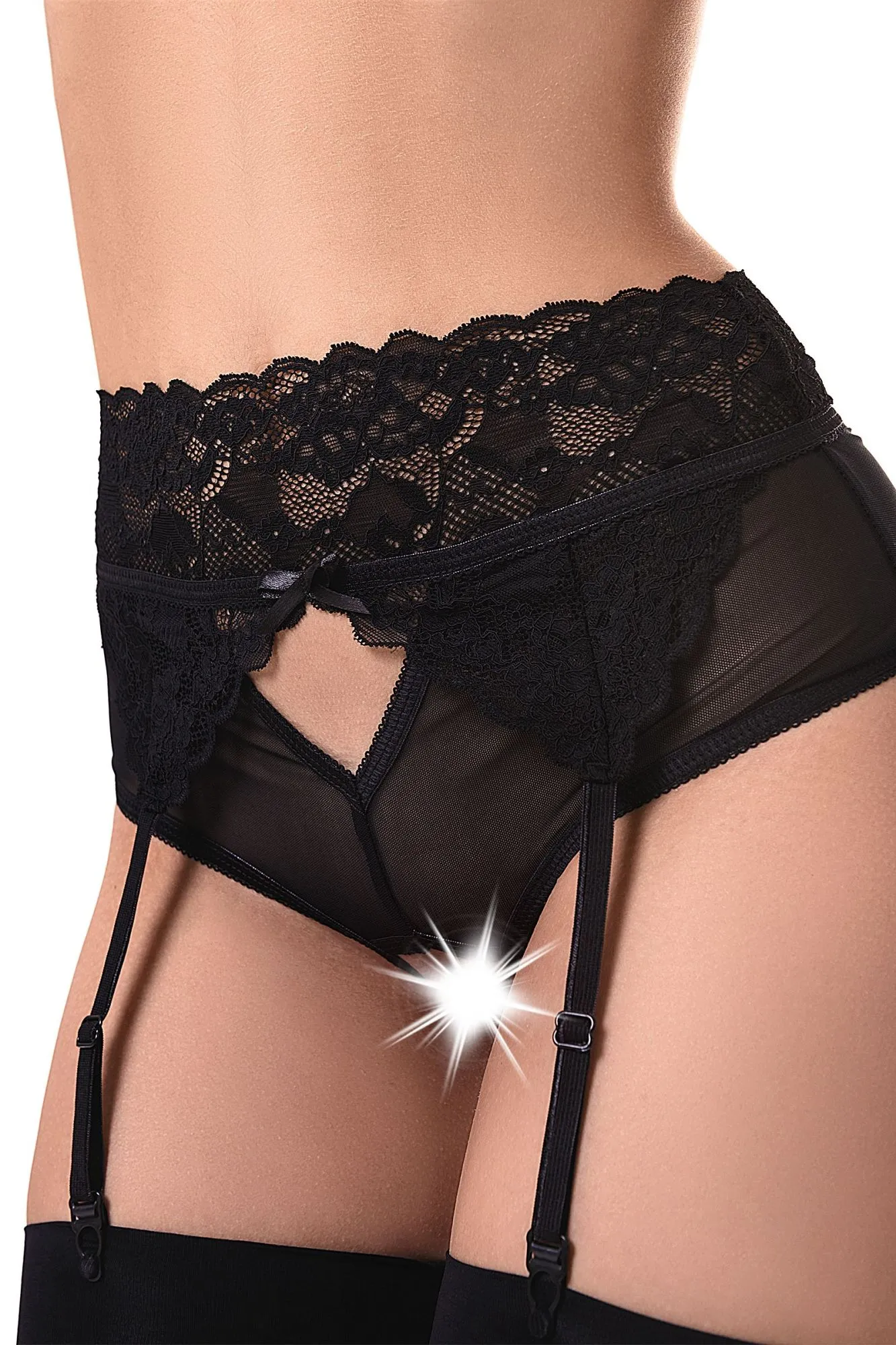 Эротические трусики-пояс Erolanta® Iveta из эластичной сетки со вставками кружева, с декоративными вырезами. Имитация пояса со свободным ажурным краем. Атласный бантик спереди. Высокая посадка. Регулируемые пажи. *Допускается замена кружева на аналогичное. Чулки в комплект не входят. На видео трусики-пояс Erolanta® Iveta дополнены идеально сочетающимся бралетт Erolanta® Marisa.
