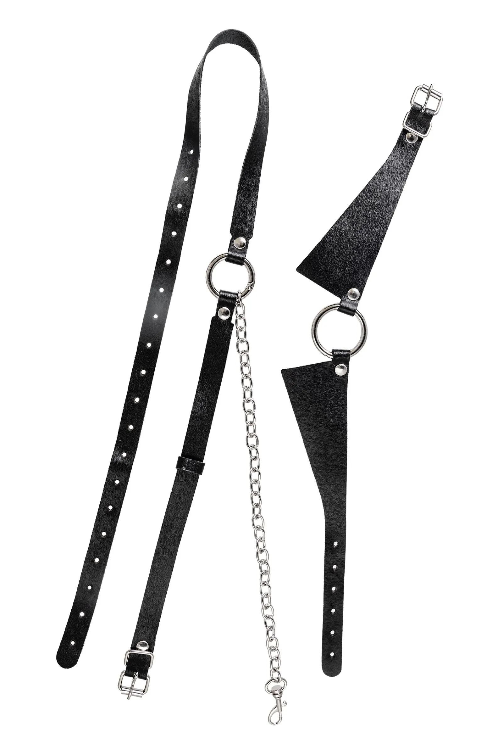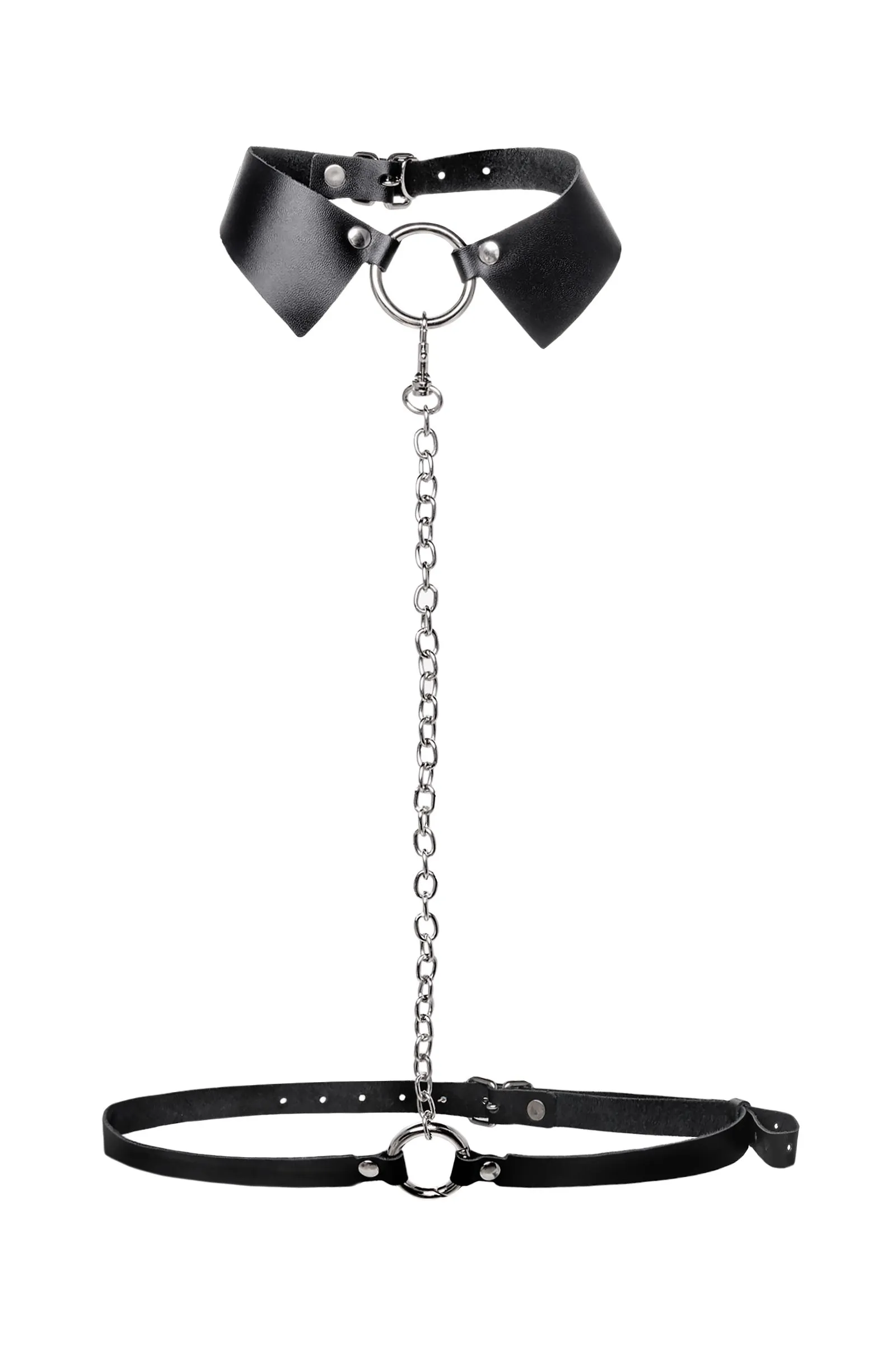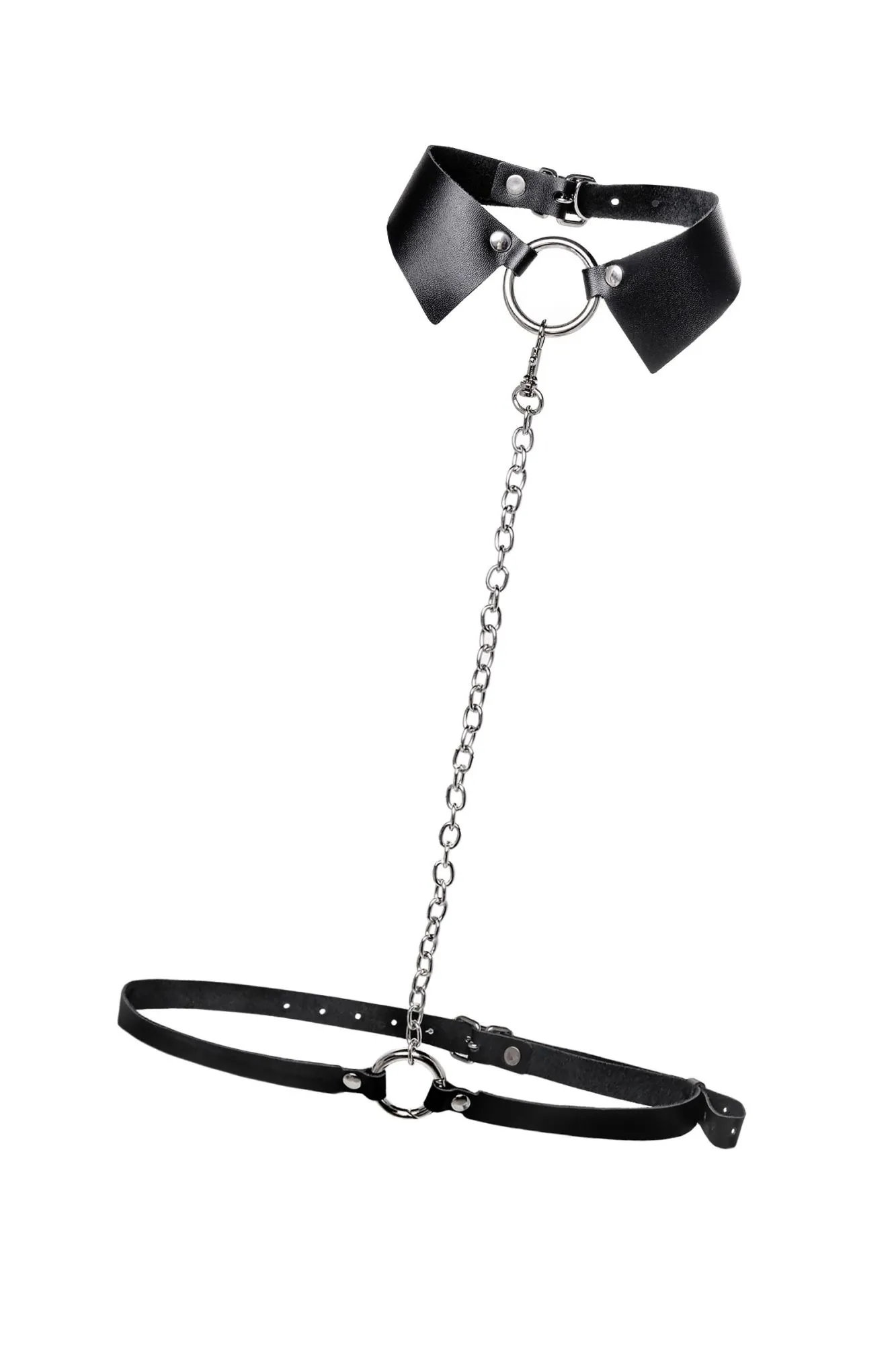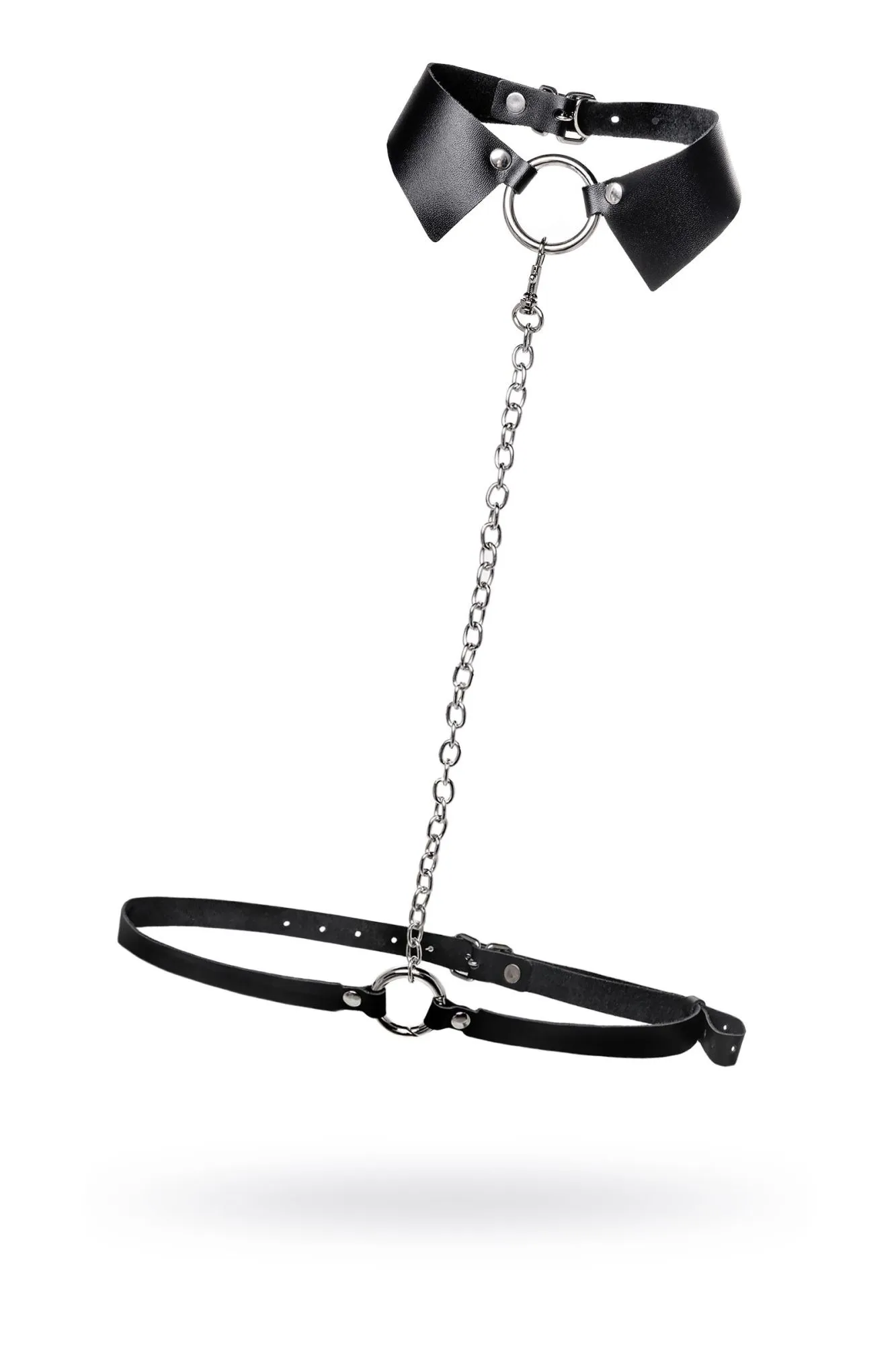 Портупея предназначена на зону шеи и живота. Аксессуар состоит из кожаного воротничка, ремней и металлической цепочки. Преимущество данной портупеи в том, что она легко превращается в ошейник с поводком или без. Натуральная кожа в меру мягкая, не тянется. Материал не вызывает раздражения и приятен на ощупь. Имеет универсальный размер и хорошо садится на девушках с любым телосложением. Регулируется по ширине с помощью стальной застежки. Чокер декорирован металлическим кольцом. К нему крепится небольшой, съемный карабин, который соединяет воротник-ошейник с поясом. Хотите подразнить партнера? В любой момент ремни на талии можно легко и быстро снять, с помощью удобного кольца-карабина. Достаточно только нажать на него и благодаря паре движений превратить пояс в ручку от поводка. Атрибут подчеркивает талию и создаёт акцент на груди. Используйте портупею как яркий аксессуар в гардеробе: сочетайте с рубашкой, водолазкой, платьем, нижним бельем. А также в качестве подарка партнеру. Воплощайте все самых горячие желания, вместе с Pecado! • 100% натуральная кожа. • Износостойкий, тактильно приятный материал • Надежная высококачественная фурнитура. • Элементы портупеи несъемные.