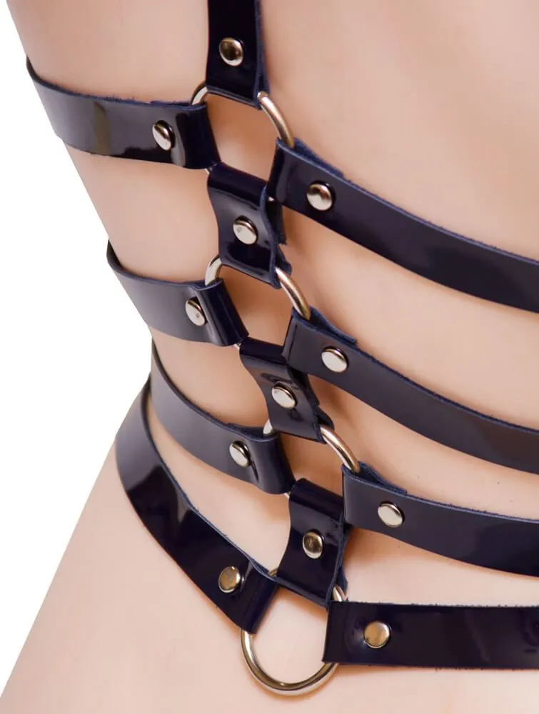Портупея с 4 ремнями подойдет для повседневного ношения поверх одежды, а также для создания необходимого образа во время ролевых игр. Портупея выполнена из натуральной кожи синего цвета, спереди и сзади ее украшают 4 ремня с пряжками. Надев данный аксессуар, Вы сможете подчеркнуть свой дерзкий стиль и раскрыть всю страстность своей натуры.