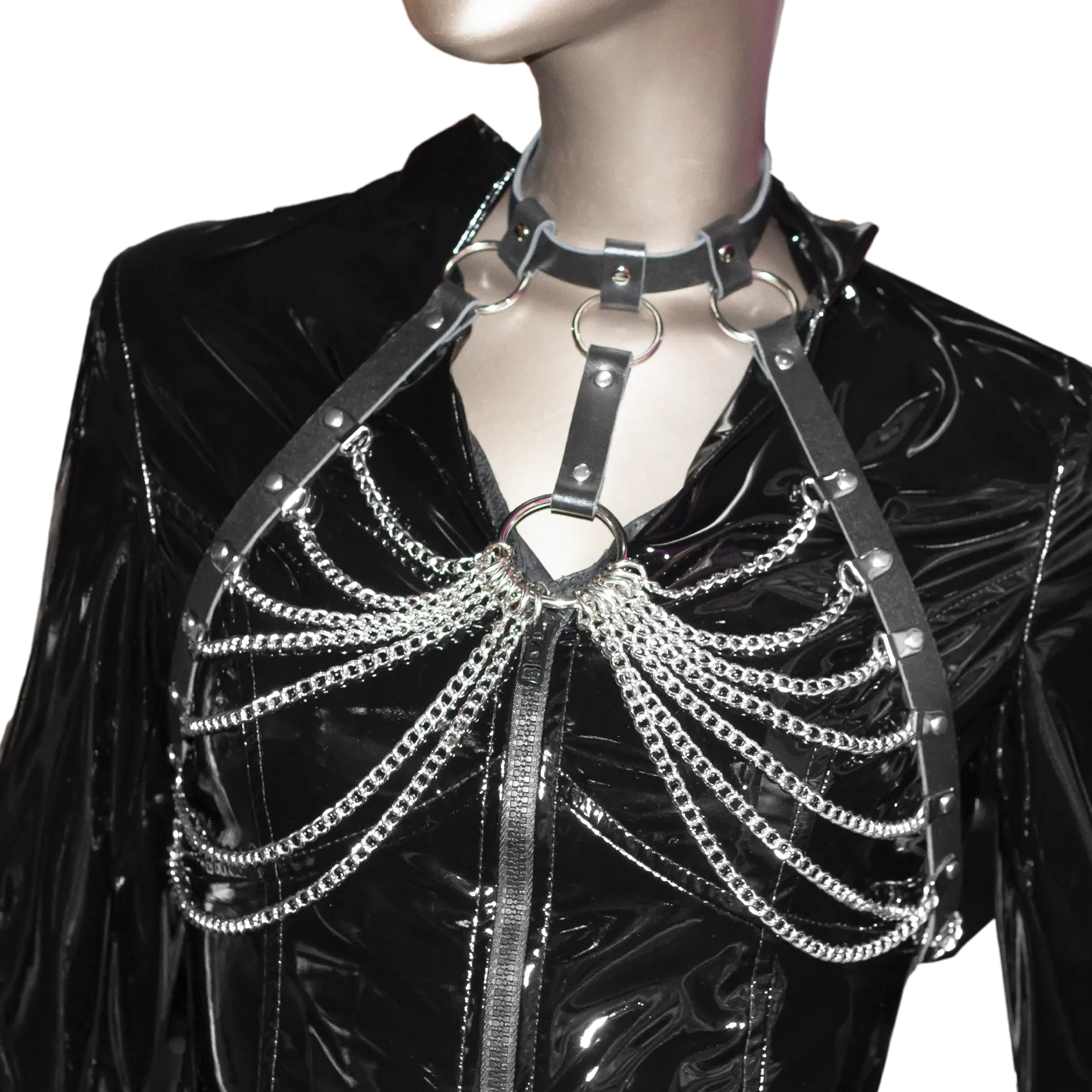 Женская черная кожаная портупея с цепями откроет новые грани в Вашей натуре. Надев ее, Вы почувствуете уверенность, страсть, а главное – ощутите себя желанной. Завершите романтический ужин с любимым не в серых обычных красках, и ваши отношения наполнятся новой волной эмоций. Запечатлите свое тело на соблазнительной фотосессии, и вы увидите, насколько Вы сексуальны сейчас, сегодня, в данный момент. У вас все еще нет повода надеть ее?