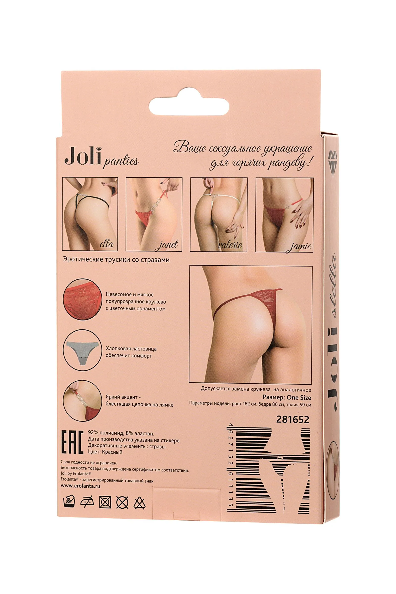Joli panties – ваше сексуальное украшение для горячих рандеву! Новая линейка романтичного белья Joli (в пер. с французского красивая) радует глаз элегантными деталями и нежными материалами европейского качества. Цветочные орнаменты плавно переходят в цепочку из страз, украшенную белыми декоративными камнями. Загадочные и сексуальные впереди и классически сзади, эти трусики - украшение самой интимной части вашего тела. Joli panties – выбери украшение для обольщения!