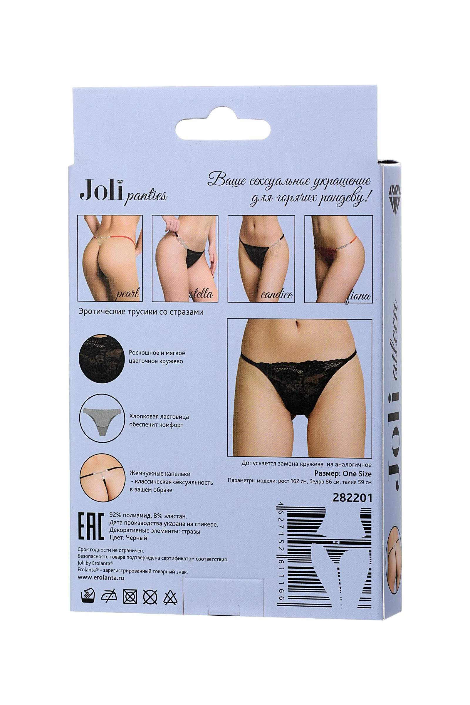 Joli panties – ваше сексуальное украшение для горячих рандеву! Новая линейка романтичного белья Joli (в пер. с французского красивая) радует глаз элегантными деталями и нежными материалами европейского качества. Элегантные кружевные трусики подчеркнут вашу индивидуальность. Тонкие, мягкие лямочки и хлопковая ластовица обеспечат комфортные ощущения. Три жемчужные капельки у основания ягодиц - благородный и сексуальный акцент. Joli panties – выбери украшение для обольщения!