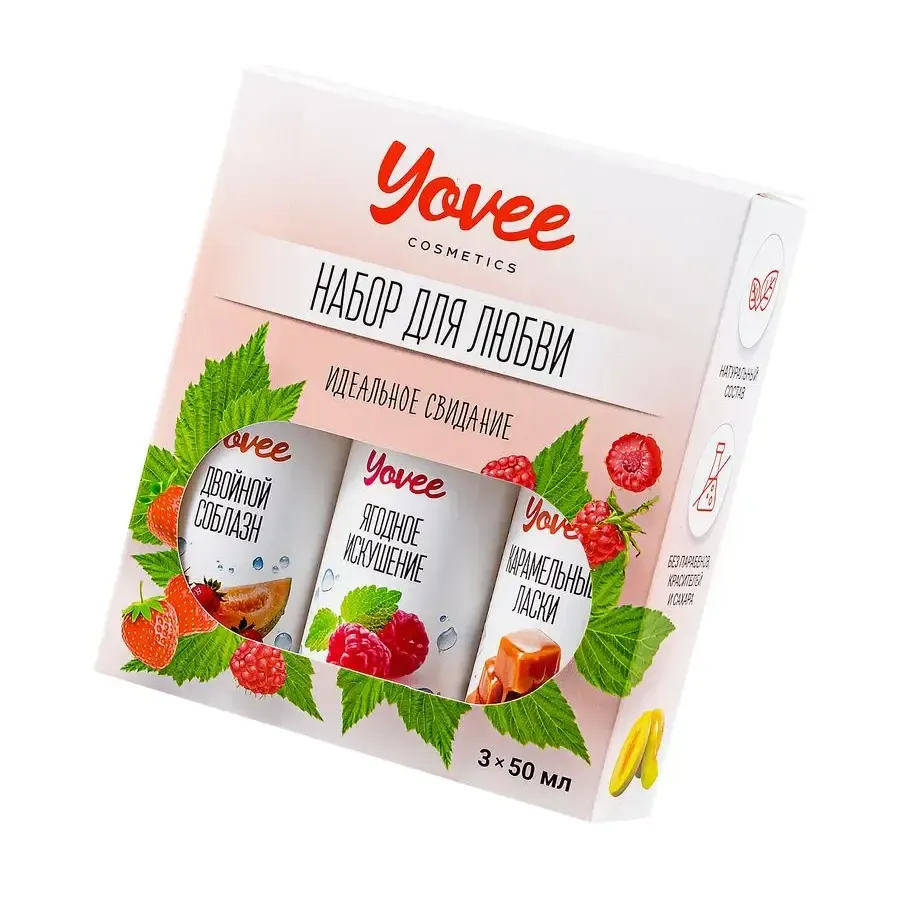 "Набор для любви" от бренда Yovee идеально подходит для эротических экспериментов. В одной упаковке три съедобных, увлажняющих геля на водной основе. Первый обладает сочным вкусом и ароматом клубники с дыней, второй - соблазнительной малины с мятой, третий - карамельной нежностью. Используйте самостоятельно или создайте свой вкус, смешивая их! Несмотря на сладость, гели не содержат сахара в составе, не нарушают микрофлору и pH-баланс. Подходят как для вагинального, так и для орального секса. Совместимы со всеми видами презервативов и игрушек для взрослых.