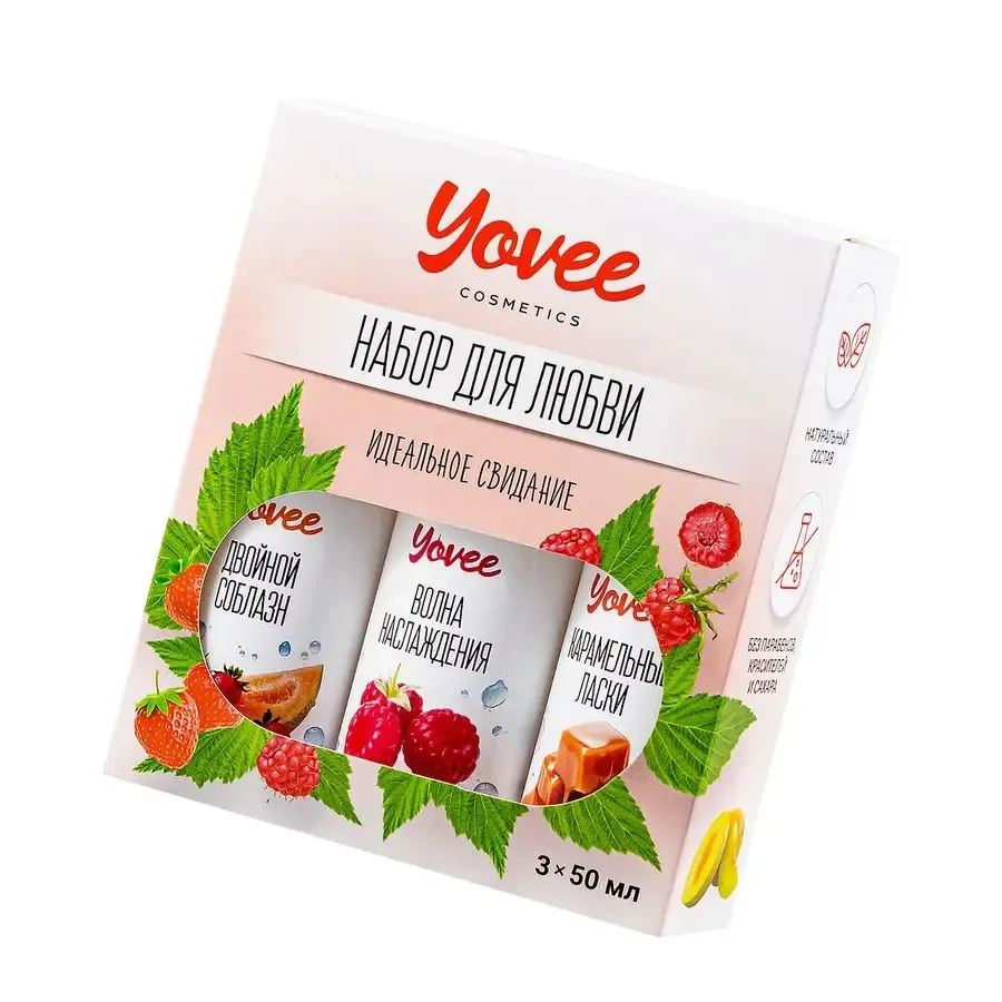 "Набор для любви" от бренда Yovee идеально подходит для эротических экспериментов. В одной упаковке три съедобных, увлажняющих геля на водной основе. Первый обладает сочным вкусом и ароматом малины, второй - клубничной нежностью с волнующими нотами дыни, третий - соблазнительной карамели. Используйте самостоятельно или создайте свой вкус, смешивая их! Несмотря на сладость, гели не содержат сахара в составе, не нарушают микрофлору и pH-баланс. Подходят как для вагинального, так и для орального секса. Совместимы со всеми видами презервативов и игрушек для взрослых.