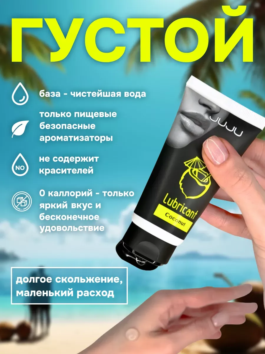 Съедобный лубрикант со вкусом кокоса отлично подойдет для любого вида близости. Водная основа смазки позволяет разнообразить интимную жизнь, обеспечивая продолжительное шелковистое скольжение. Лубрикант можно использовать с любыми интим игрушками, а также с презервативами. Состав: вода очищенная, глицерин, гидроксиэтилцеллюлоза, ароматизатор пищевой, бензоат натрия, сорбат калия, пропиленгликоль, сахаринат натрия, лимонная кислота, объем – 50 мл, производитель – JuJu (Россия). срок годности-3 года.