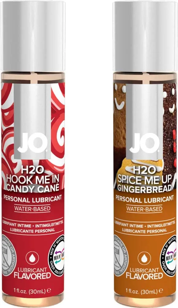 Лубрикант со вкусом леденца Candy Cane 30 мл + лубрикант со вкусом имбирного пряника Gingerbread 30 мл. Не содержат сахара и подсластителей. Глицерин растительного происхождения в составе. Безопасен для проглатывания и вагинального использования. Не нарушает микрофлору и кислотно-щелочной баланс влагалища.