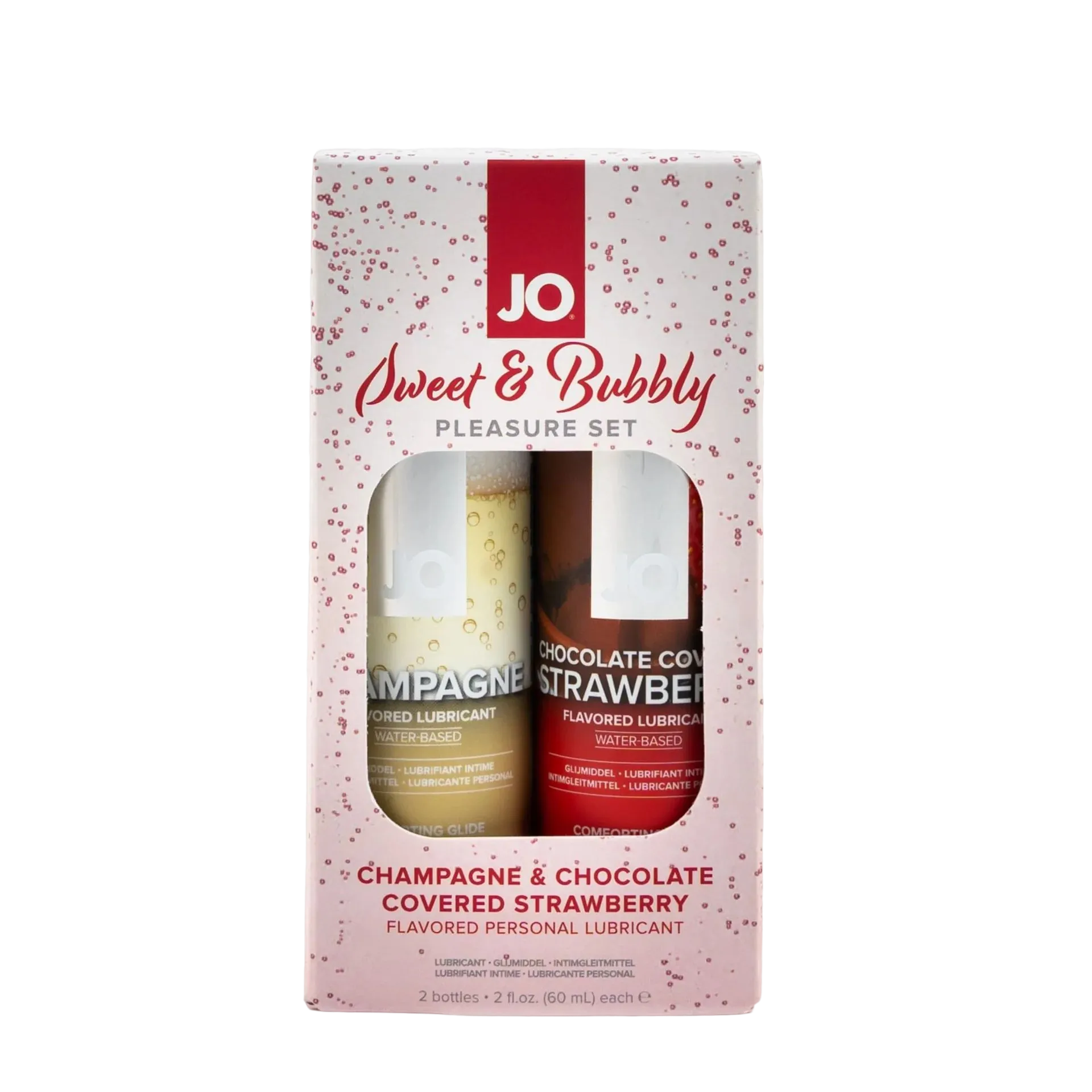 Набор из лубрикантов "JO": Шампанское/Champagne и Клубника в шоколаде/Chocolate Covered Strawberry станет прекрасным дополнением к романтическому вечеру. Благодоря вкусовым лубрикантам оральные ласки становятся более приятными и страсными.