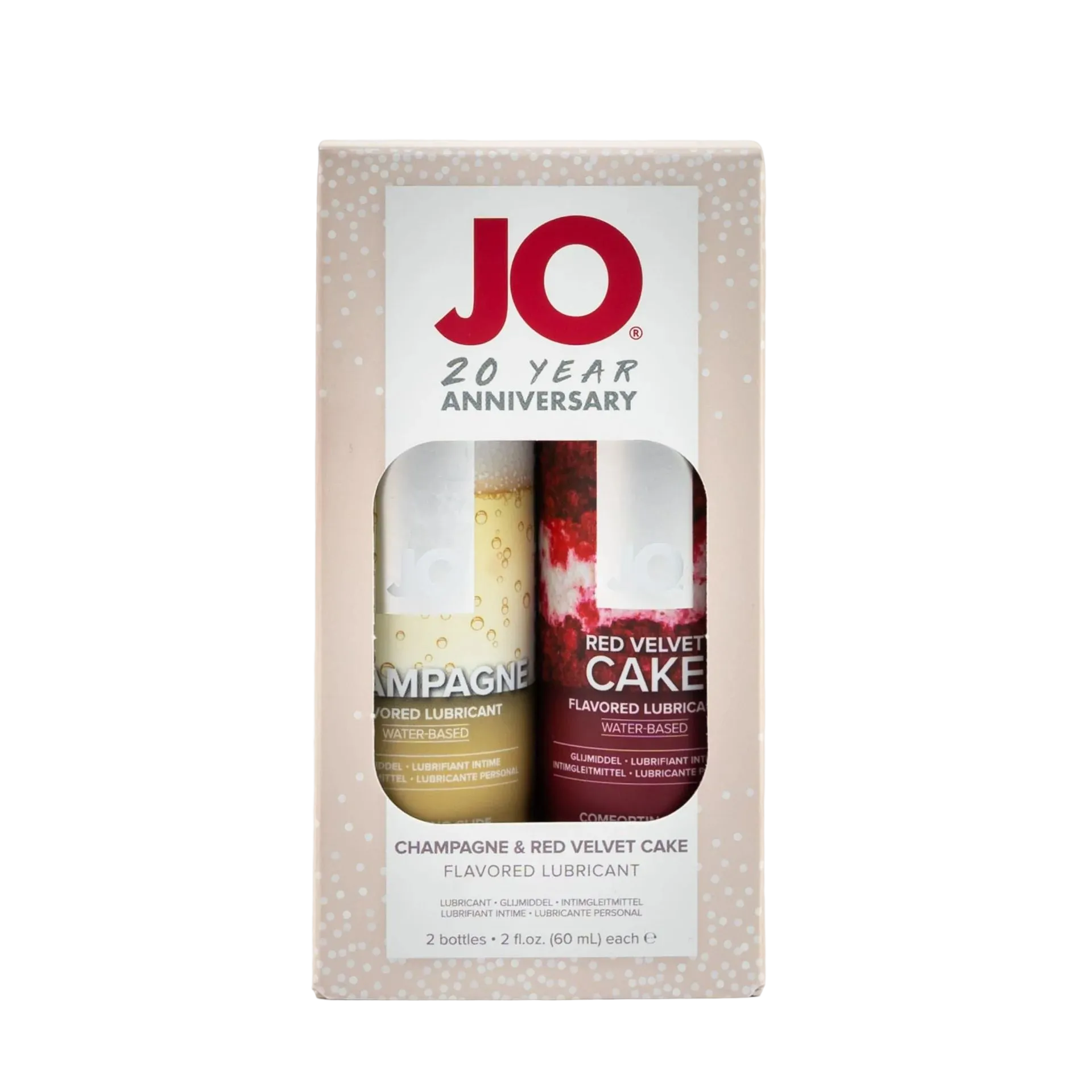 Лимитированый набор из лубрикантов "JO": Шампанское/Champagne и Красный бархат/Red Velvet Cake создан в честь 20-летия бренда System JO.