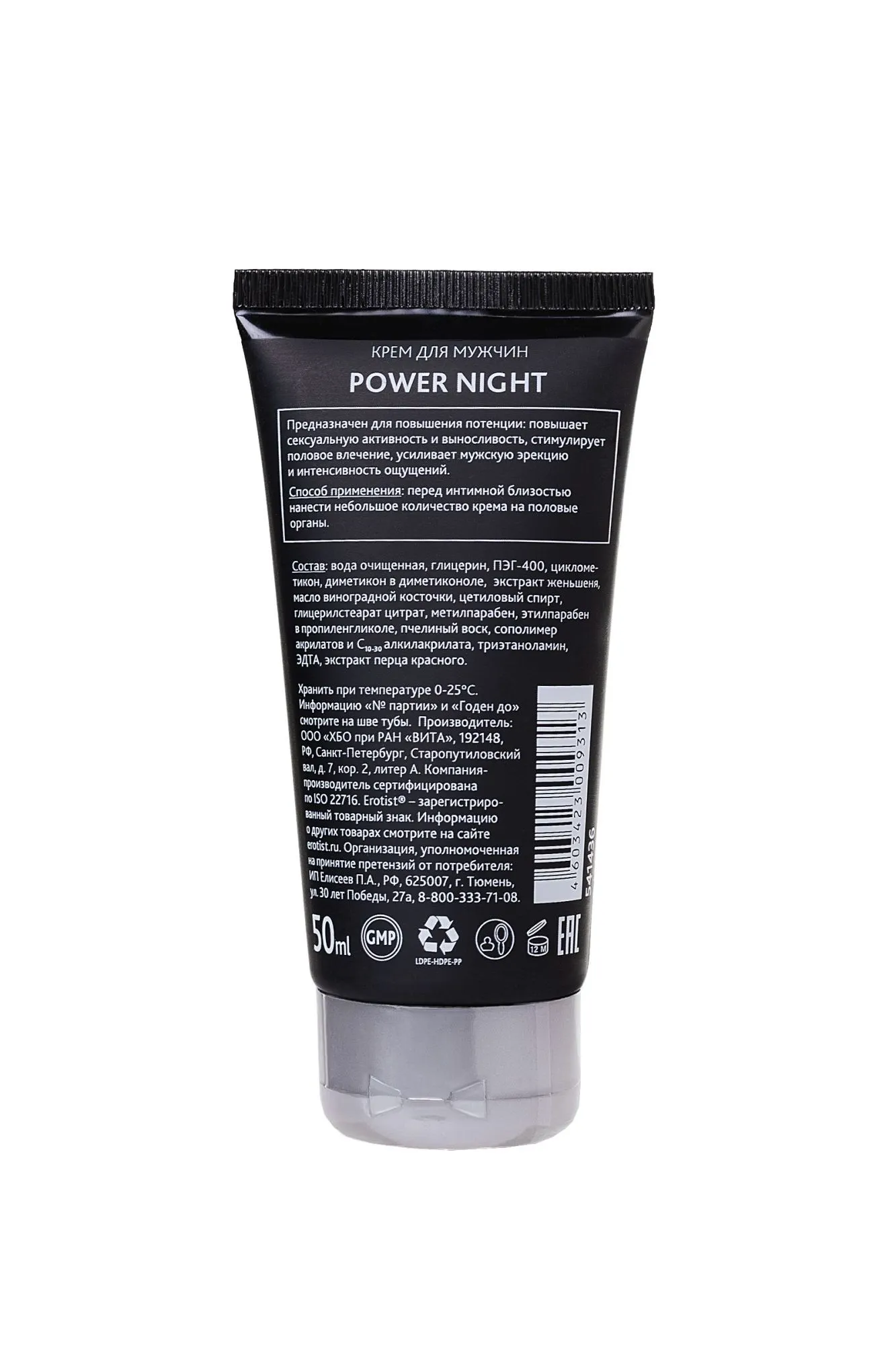 Качество полового акта значительно выше у тех, кто использует мужской крем EROTIST Power Night. Почему? Этот крем улучшает сексуальную активность и выносливость мужчины, усиливает эрекцию и подогревает желание. Он бодрит даже после тяжёлого рабочего дня. Но главное — EROTIST Power Night придаёт ощущениям изысканный вкус эйфории! Его должен испытать каждый…