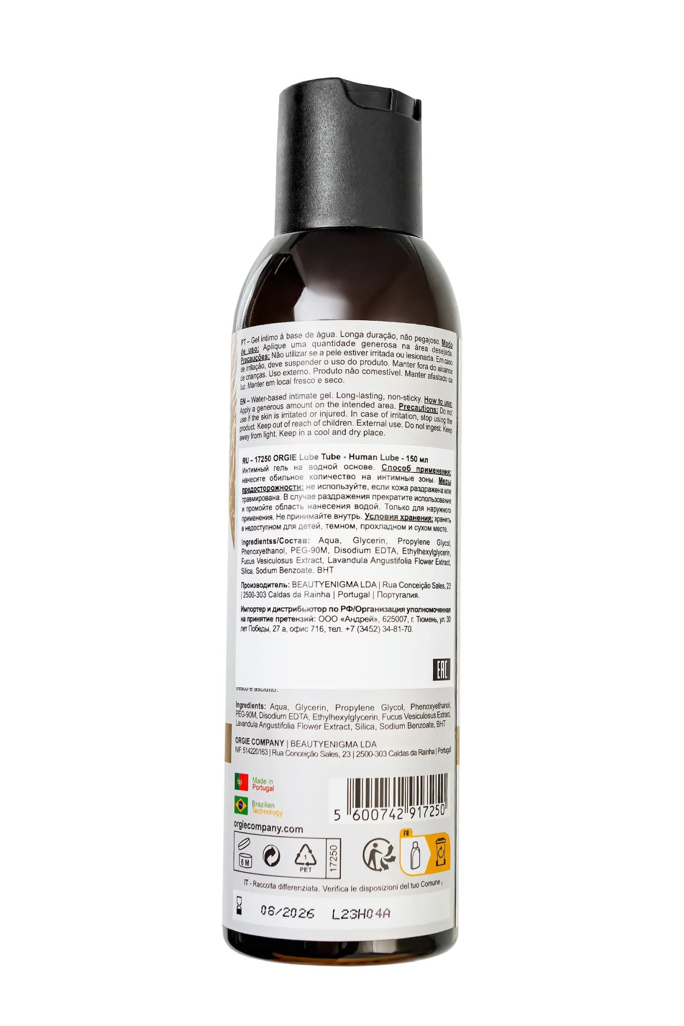 Премиальный гель-лубрикант Lube Tube - Human Lube от Orgie разработан для самых взыскательных покупателей. Этот продукт, вдохновленный совершенством, предлагает вам непревзойденное качество и элегантность в каждой капле. Human Lube – идеальный выбор для тех, кто ценит высочайшие стандарты. Этот гель-лубрикант обладает уникальной ультра-глянцевой текстурой, которая превосходно имитирует естественную сексуальную смазку и слюну. Специально созданная формула обеспечивает длительное увлажнение и защиту. Высококачественная формула: Создана для безопасности и комфорта, подходит для всех типов кожи и частого использования. Идеальная текстура: Вязкость геля точно повторяет естественную смазку, создавая реалистичные и комфортные ощущения. Улучшает каждое прикосновение, делая ваши моменты близости ещё более страстными и незабываемыми. Успокаивающие свойства: Обогащенные ингредиенты успокаивают кожу и способствуют заживлению мелких травм, вызванных трением. Экстракт бурых морских водорослей богат антиоксидантами и минералами – улучшает увлажнение и смягчает кожу. Экстракт лаванды известен своими успокаивающими и антисептическими свойствами, помогает расслабить кожу и уменьшить раздражение. Стойкость: Длительное действие позволяет наслаждаться каждым моментом без необходимости частого повторного нанесения. Способ применения: Щедро нанесите гель на необходимую область, равномерно распределяя его для максимального комфорта и удовольствия. При необходимости повторите нанесение. Этот гель-лубрикант от Orgie — идеальный выбор для тех, кто ищет не просто продукт, а настоящее произведение искусства в мире интимной косметики. Подарите себе и своему партнёру уникальное удовольствие и комфорт с этим роскошным лубрикантом. Orgie – это не просто бренд интимной косметики, это бразильский гимн любви и наслаждению. Продукция Orgie, созданная с использованием натуральных афродизиаков и инновационных формул, пробуждает чувственность и дарит незабываемые ощущения как в интимной близости с партнером, так и в сольном путешествии к самопознанию. Orgie – это философия, призывающая ценить и исследовать все грани интимности, делая каждый момент незабываемым.
