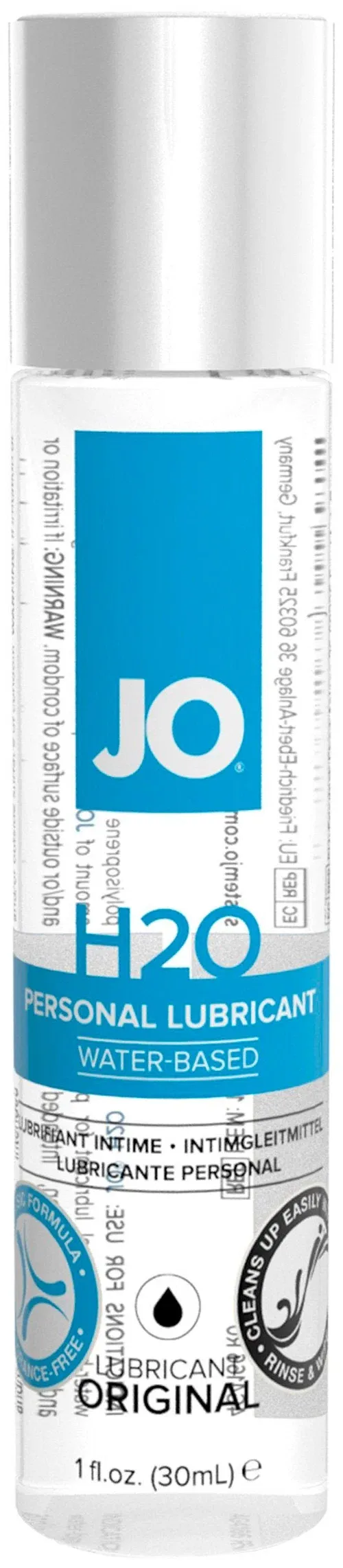 JO H2O - интимный лубрикант на водной основе. Входящий в состав глицерин исключительно растительного происхождения. Обеспечивает комфортное нежное скольжение без липкости.