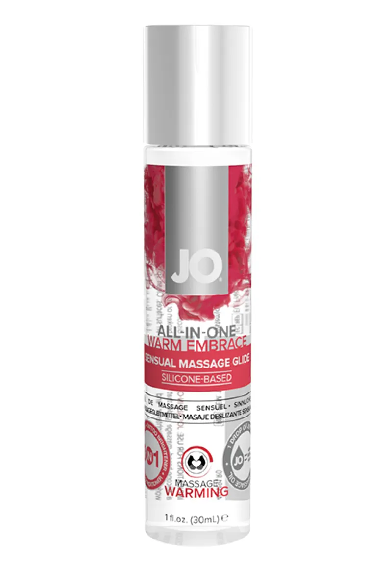 Массажный гель на силиконовой основе All-in-One Massage Glide Warm Embrace. Универсальное средство для чувственных наслаждений и идеального скольжения. Силиконовая основа обеспечивает гладкое и шелковистое длительное скольжение по коже во время массажа. Можно оставить на коже и он будет работать как кондиционер, помогая коже удерживать влагу и защищать от внешнего воздейсвтия. Водостойкая формула идеально подходит для игр в душе. С All-in-One можно осуществлять все виды массажана, включая эротический. Теперь не нужно множественных тюбиков на прикроватной тумбочке, достаточно JO All-in-One. Одно средство для массажа, для игр в воде, для ухода за кожей. Шелковистый и нежный, абсолютно не липкий. Не скатывается. Может использоваться как лосьон для визуального увеличения яркости татуировок. Одна капля силиконового массажного геля равно 10 капель обычного масла. Очень экономичный расход. Рекомендуется во всем мире врачами и фармацевтами.