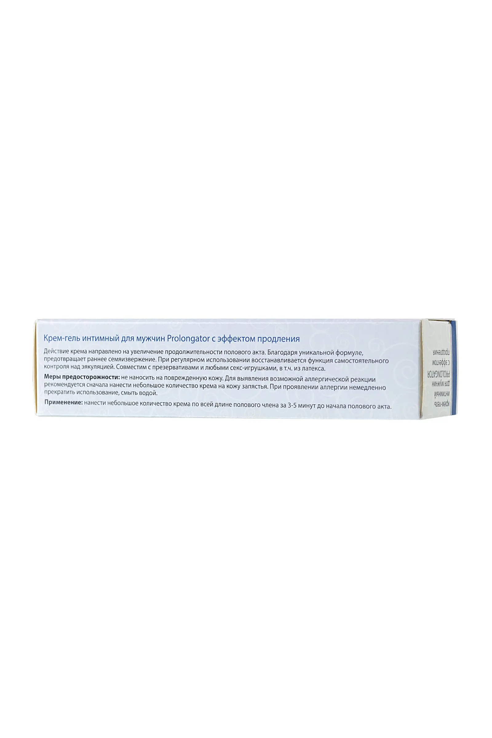 Интимный крем «DESIRE Intim» «PROLONGATOR» позволяет существенно увеличить длительность сношения. За счёт уникального состава крема, а крем обладает слегка охлаждающим эффектом, нервные окончания на половом органе мужчины «притупляются» и семяизвержение задерживается на 15-20 минут. При регулярном использовании нормализуется самостоятельная функция регулирующая семяизвержение. ВАЖНО! Попросите партнёршу или самостоятельно, выдавить крем для продления полового акта размером с горошину на чистую ладонь, равномерно распределить между ладонями и лёгкими прикосновениями нанести крем на ствол пениса по всей длине за 3-5 минут до начала полового акта. Дозировку увеличивать постепенно, по мере необходимости. Противопоказаний не имеет. Возможна индивидуальная чувствительность. Без труда смывается тёплой водой. Объём 30 мл. Рекомендуем использовать с презервативами из различных материалов. Это средство «удовлетворит» обоих!