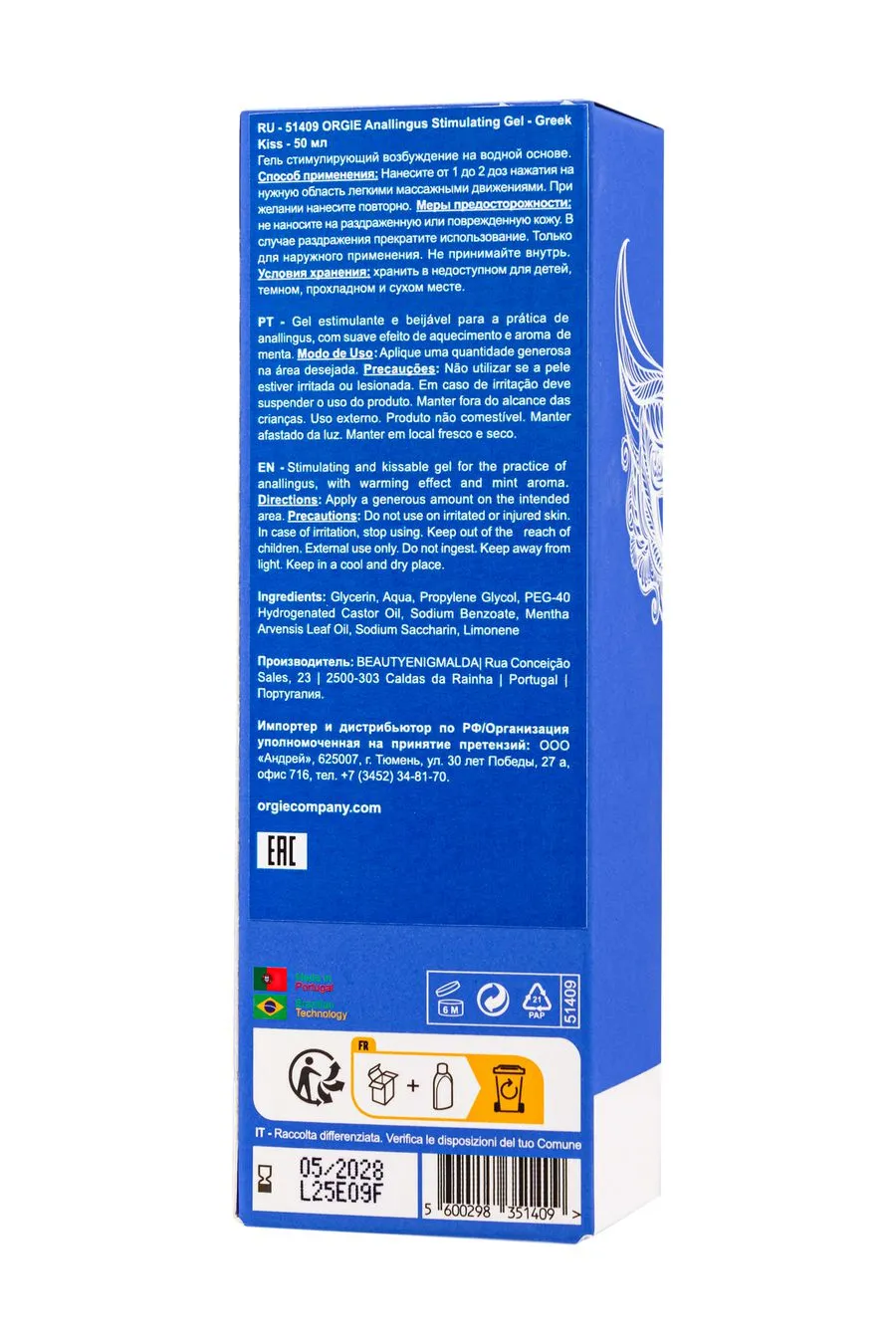 Greek Kiss от Orgie — это не просто стимулирующий гель, это приглашение к самым чувственным ласкам, о которых вы мечтали. Специально созданный для анилингуса, он дарит яркий охлаждающий эффект и нежное покалывание, пробуждая чувствительность и усиливая каждое прикосновение.