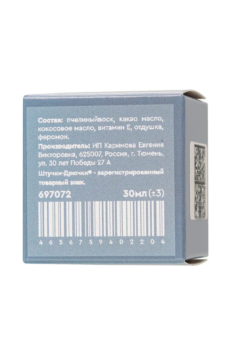 Пчелиный воск, какао масло, кокосовое масло, витамин Е, отдушка, феромон