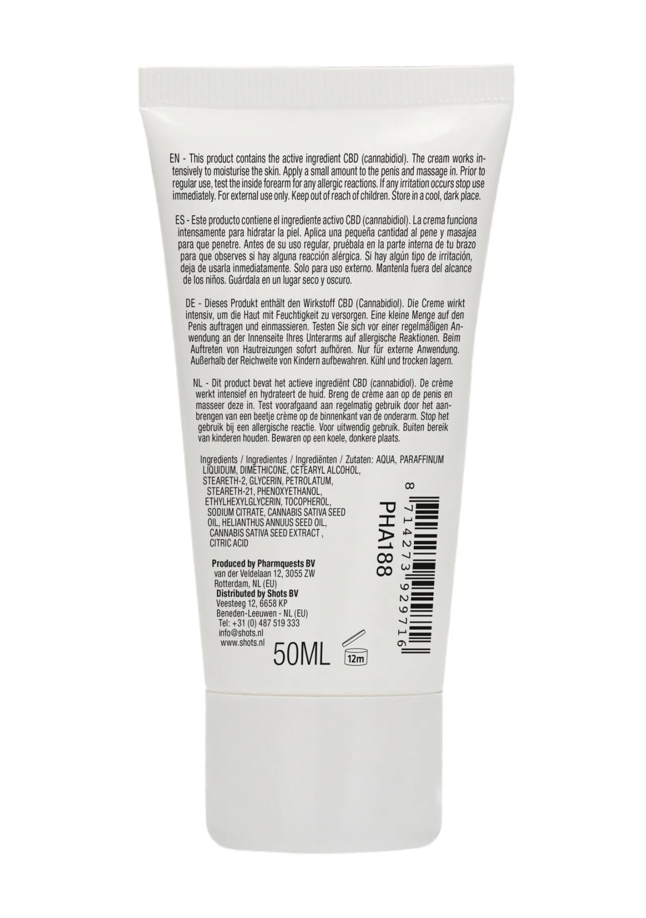 Состав: Вода, вазелиновое масло, диметикон, цетеариловый спирт, стеарет-2, глицерин, вазелин, стеарет-21, феноксиэтанол, этилгексилглицерин, токоферол, цитрат натрия, масло семян каннабиса посевного, масло семян подсолнечника однолетнего, экстракт семян каннабиса посевного, лимонная кислота.