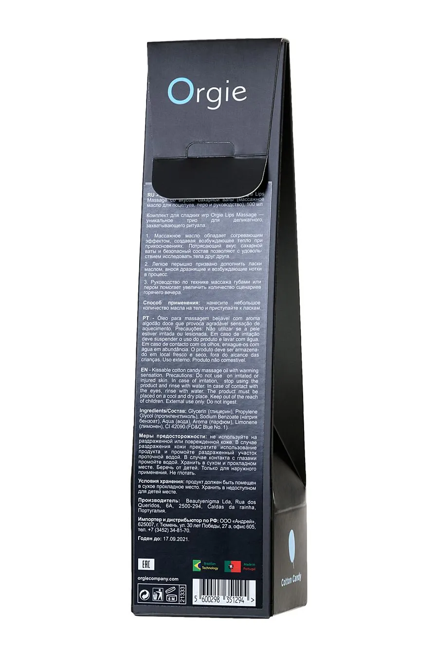 - Сладкое массажное масло Orgie Lips Massage обладает согревающим эффектом. При прикосновениях оно создает возбуждающее тепло. Потрясающий вкус сахарной ваты служит отличным поводом, чтобы с удовольствием исследовать тело партнера и взволновать его не на шутку. Можно применять в самых разных вариантах — расслабляющий массаж или эротический, оральные ласки или просто жаркие поцелуи.