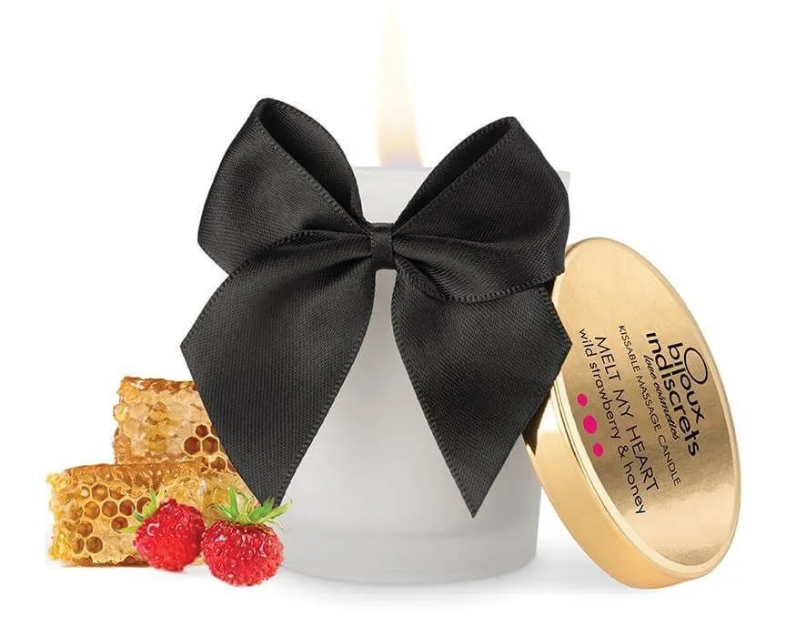 Массажная свеча Melt My Heart с ароматом клубники и меда от бренда Bijoux Indiscrets поможет паре приятно провести вечер в интимной обстановке и побаловать друг друга возбуждающим массажем. Зажгите свечу и подождите, пока воск растает, распространяя вокруг соблазнительный аромат клубники. Немного остудившееся массажное масло с приятной текстурой нанесите на тело, уделяя внимание самым чувствительным местам на теле партнера. Мерцающее пламя свечи в темноте и возбуждающий аромат настроят пару на романтичный лад и создадут обстановку, располагающую к интимным ласкам.
