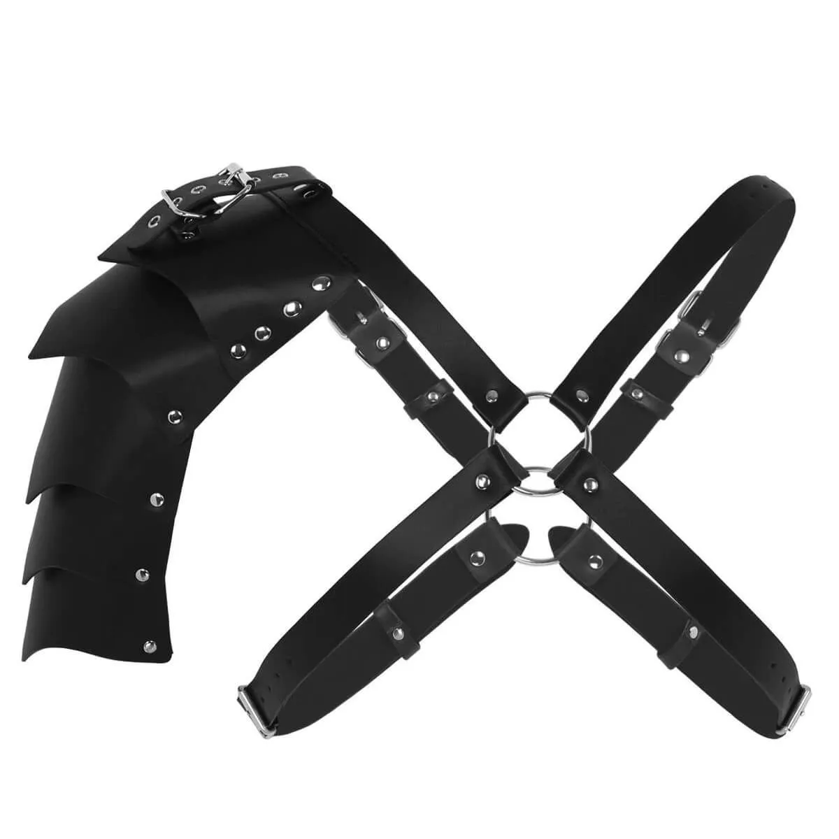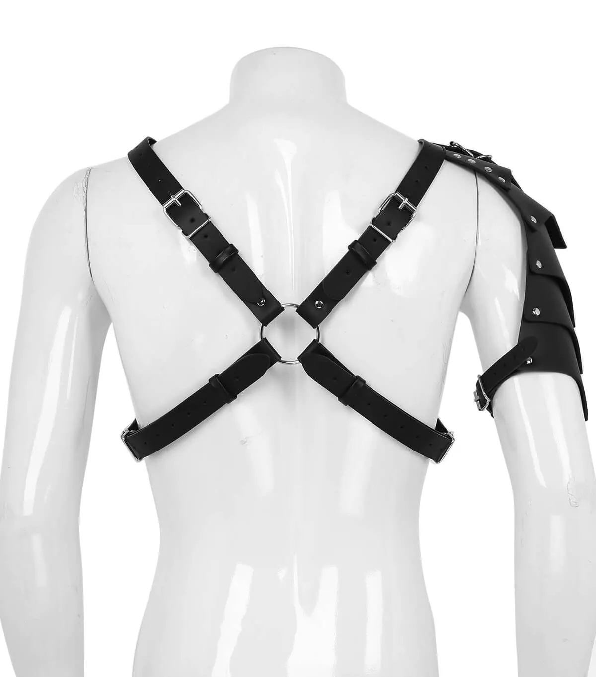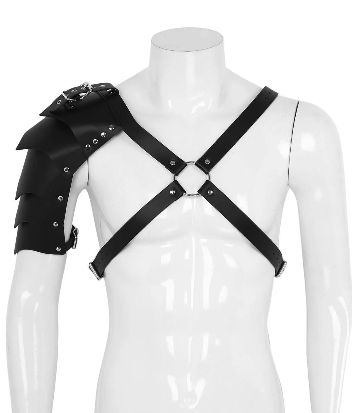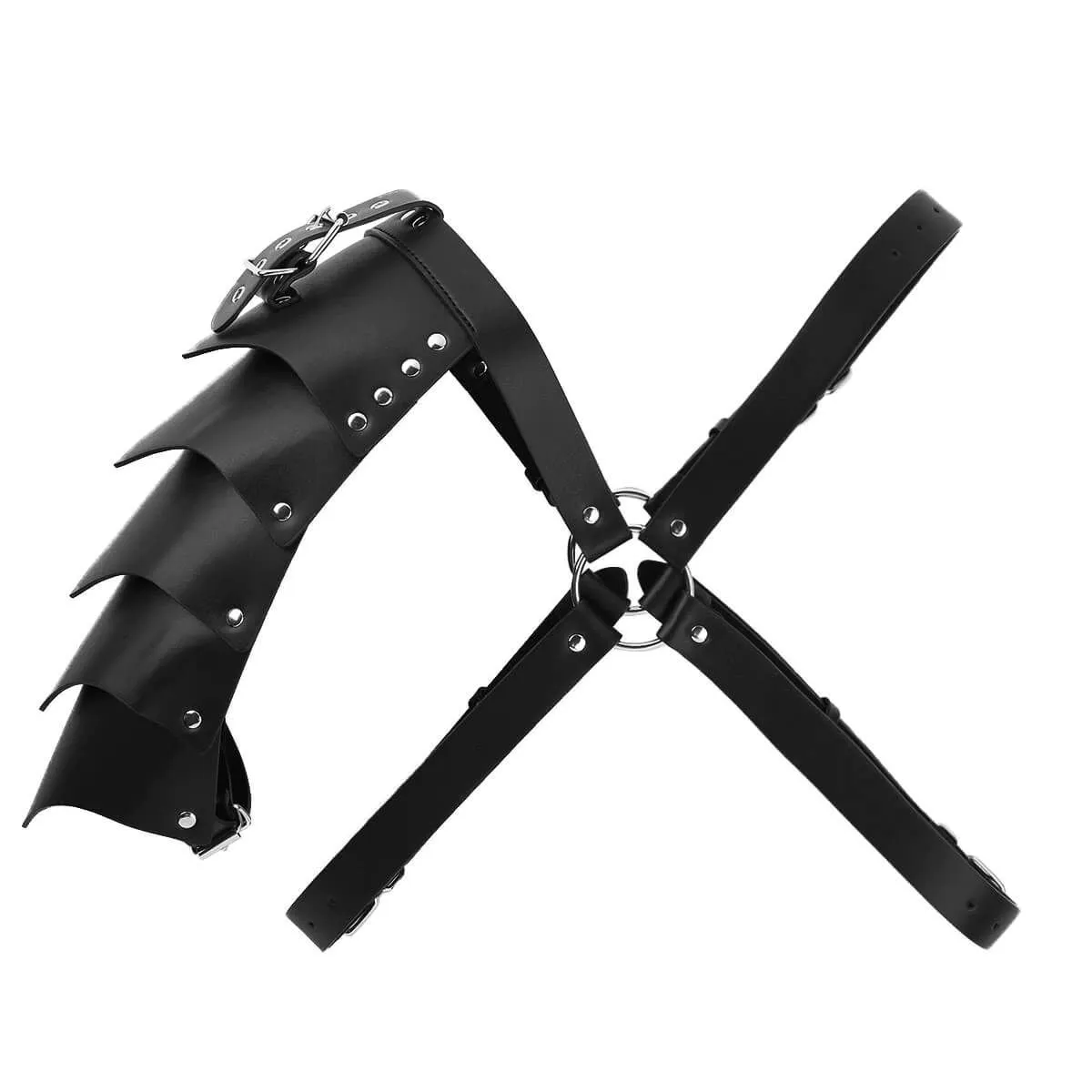 Мужская портупея с крылом от бренда Lapin Rose состоит из переплетающихся ремней, сделанных из полиуретана, и металлической фурнитуры. Такой аксессуар добавит образу сексуальности, ведь он сделает фигуру визуально более подтянутой, а декоративное крыло украсит одно из плеч, подчеркнув Вашу мужественность. Портупею можно надеть на вечеринку или дружескую встречу, сочетая ее с однотонными рубашками и футболками для создания необходимого настроения в облике. А надетая на голое тело, она способна вызвать желание партнерши и создать необходимую атмосферу, предвещающую смелые эксперименты и интимные подвиги.