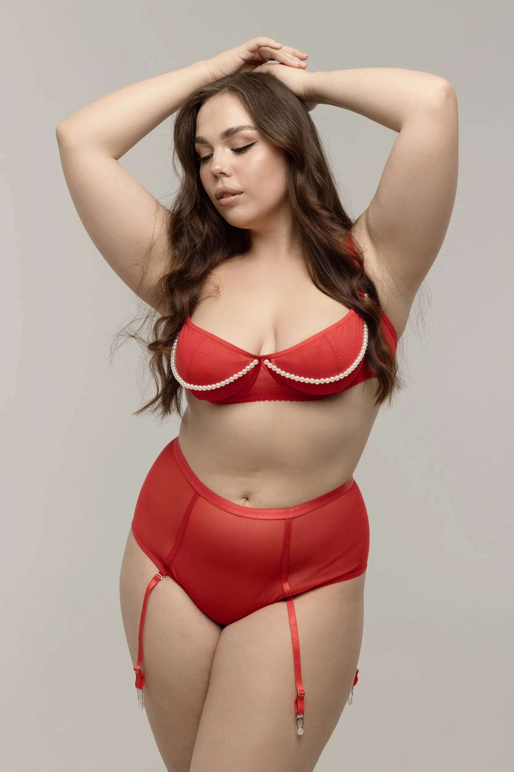 Приятная мягкая ткань, петельки для крепления чулок и украшение в виде ниточки бусин в зоне доступа - всё это доставляет визуальное, тактильное и эротическое удовольствие.