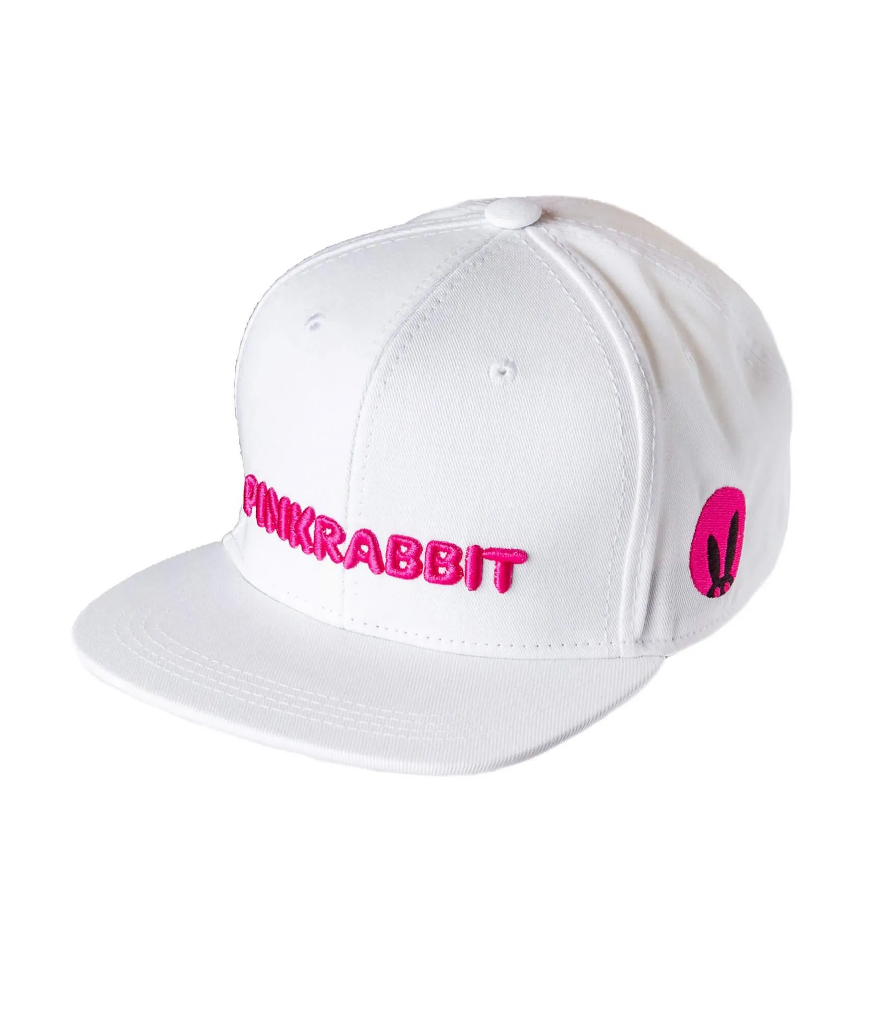 - бейсболка белого цвета с вышитым названием бренда "Pink Rabbit"