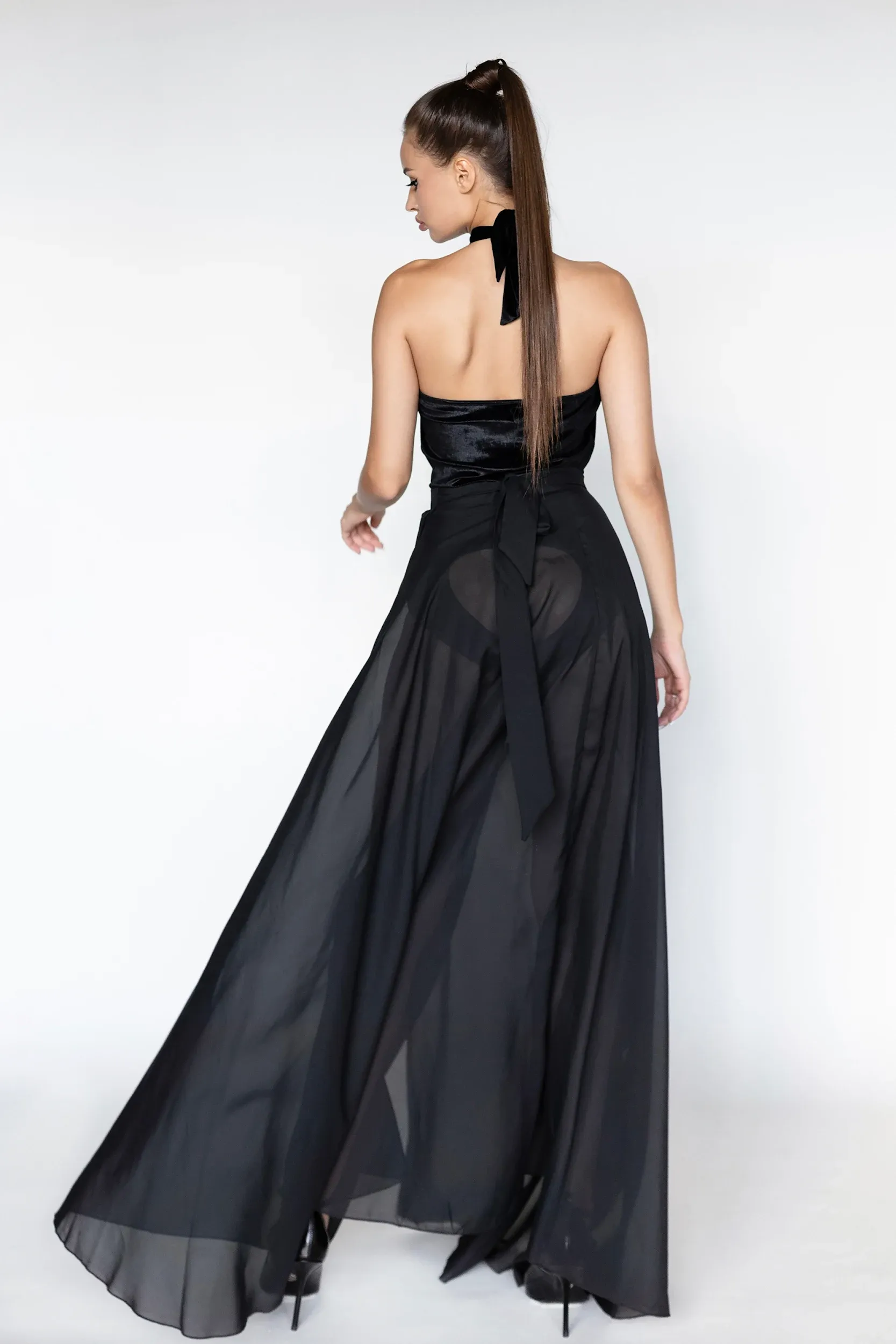 Красивое сексуальное бархатное боди с летящей шифоновой съёмной юбкой. Особое очарование придают этому комплекту вырезы на груди и сздаи на крестце, которые приоткрывают соблазнительные ложбинки вашего тела. Ваш невероятный образ запомнится надолго. Не зря он называется Broadway. Ощутите себя бродвейской дивой, которой восхищены поклонники!
