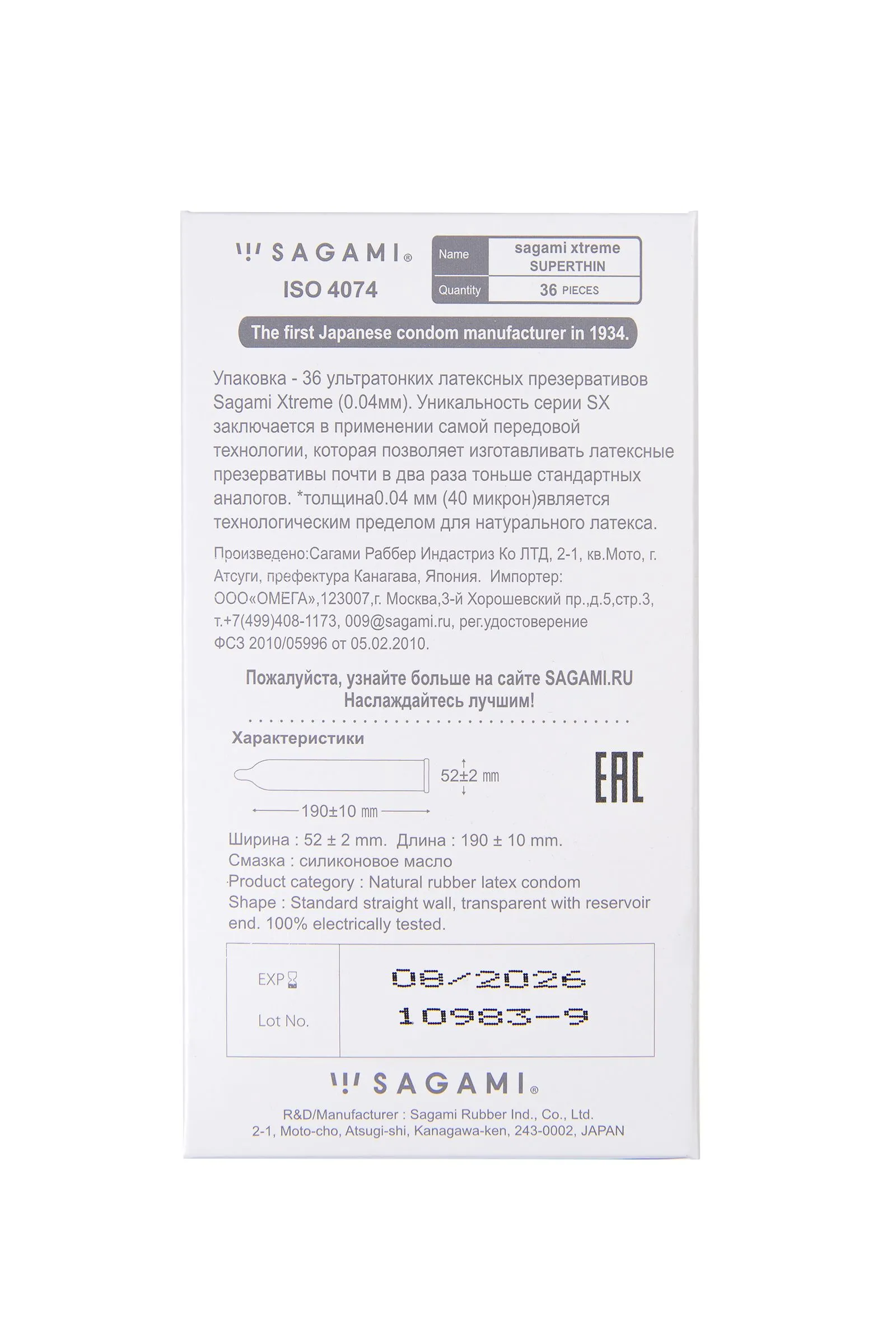 Может ли секс с презервативом быть таким же естественным, как без него? Да, ведь презервативы Sagami Xtreme разработаны с учетом передовых японских технологий для максимально комфортных и естественных ощущений обоих партнеров. Новая большая упаковка из 36 презервативов экономит бюджет и стимулирует чаще заниматься любовью. Ультратонкие – толщина стенки презерватива всего 0,04 мм, вы только представьте — тоньше человеческого волоса почти в 2 раза, при сохранении самой высокой эластичности и надежности. Их стенки настолько тонкие, что вы сможете забыть о присутствии презерватива и легко насладиться всей гаммой ощущений от близости. Гладкие прозрачные Sagami Xtreme с накопителем плотно прилегают к члену, предотвращая сползание. Безопасные Sagami Xtreme производятся из 100% натурального латекса, не имеют запаха и надежно защищают от нежелательной беременности и ЗППП. Силиконовый лубрикант обеспечивает максимально комфортное проникновение и длительное шелковистое скольжение. Презервативы Sagami Xtreme – наслаждайтесь настоящими чувствами! Длина 195 мм, ширина 54 мм Количество в упаковке - 36 шт Производитель - Япония