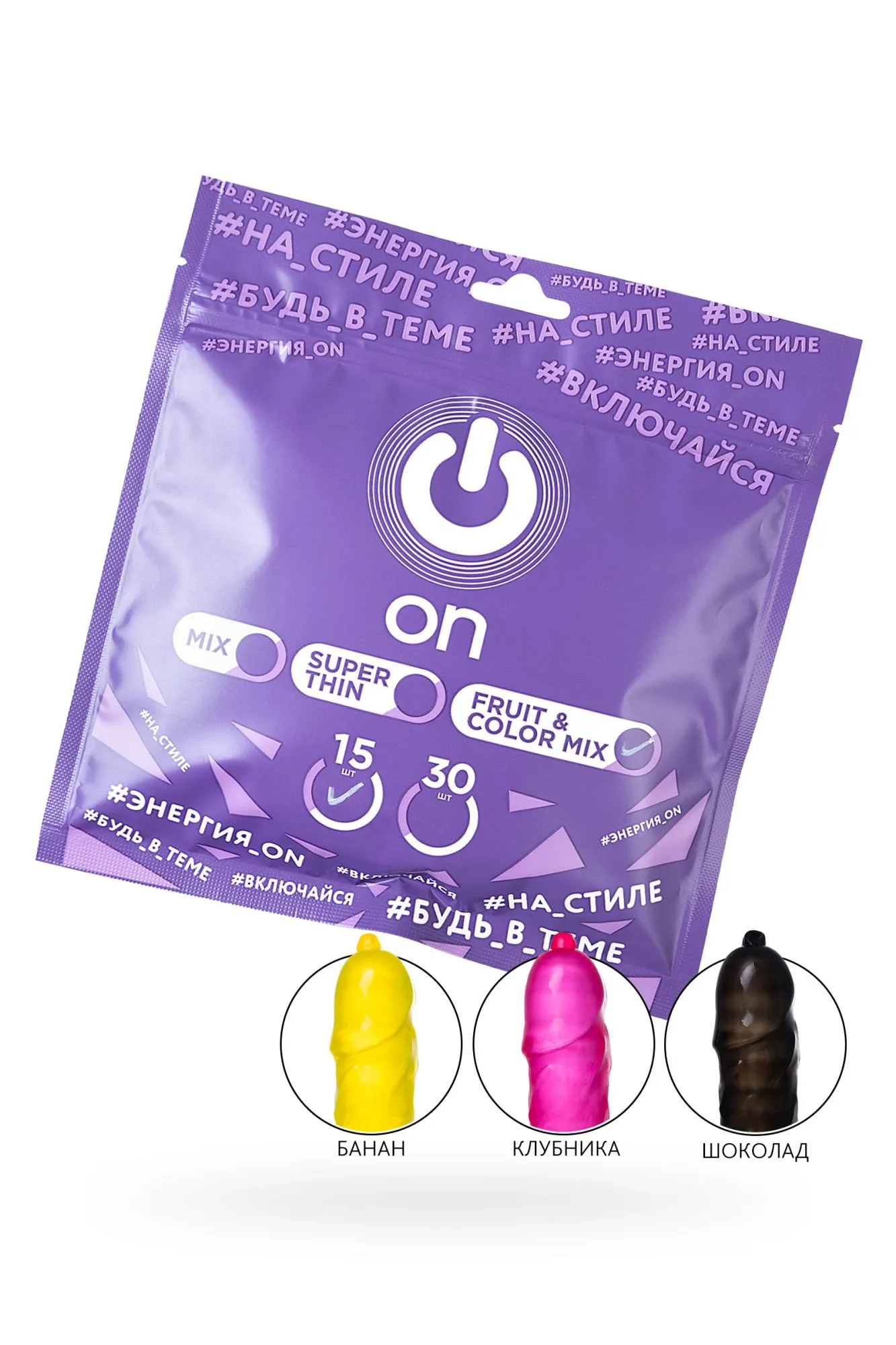 Презервативы On – это немецкие презервативы Высокого качества соответствующие всем европейским стандартам, что обеспечивает исключительную надежность и незабываемые ощущения. Исключительное качество латекса дает чувство комфорта. Лубрикант не имеет запаха, не оставляет следов на одежде, не вызывает раздражение на коже и аллергических реакций. Презервативы On Fruit & Colour (ароматизированные) Презервативы классической формы, с лубрикантом и накопителем, желтого (банан), красного (клубника) и черного (шоколад) цвета. ШИРИНА: 54 мм ДЛИННА: ) 185 мм ТОЛЩИНА: 0.07 мм ЛУБРИКАНТ: СИЛИКОН