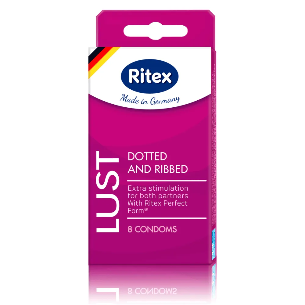 Ritex LUST - это ребристый и шипованный презерватив, который дополнительно стимулирует обоих партнеров. Нежная, но выраженная структура точек и ребер позволяет усиливать ощущения во время занятий любовью. Идеальная форма презерватива Ritex адаптируется к каждому сантиметру, каждой ямке и выпуклости! Смазочное покрытие обеспечивает нежную игру любви.