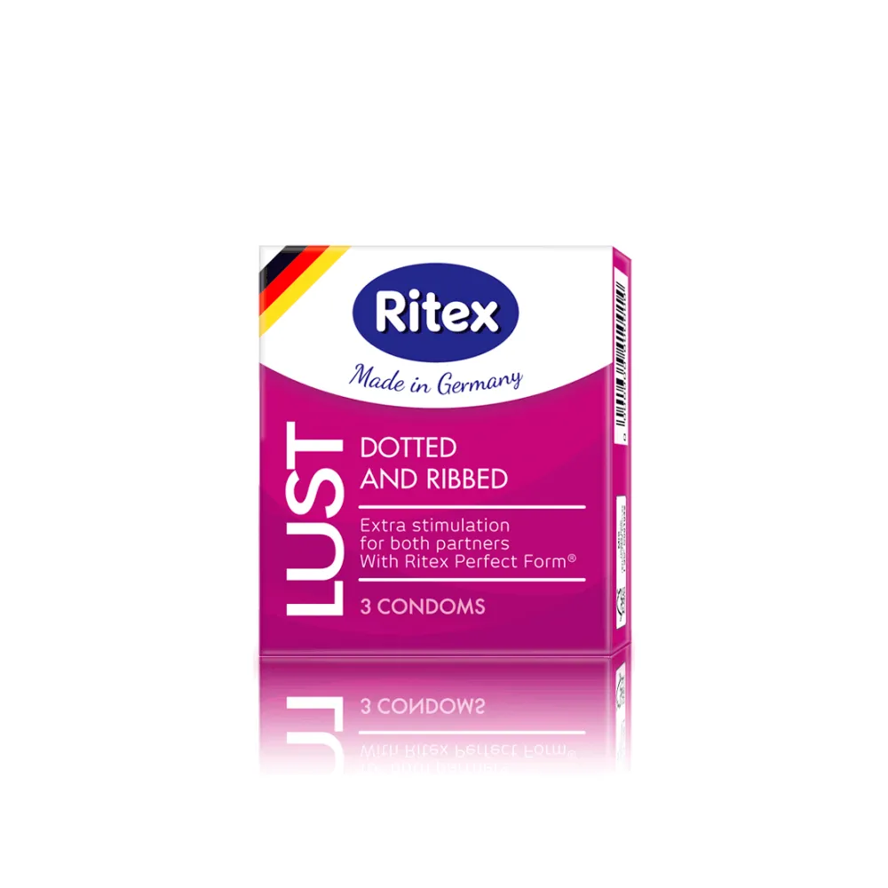 Ritex LUST - это ребристый и шипованный презерватив, который дополнительно стимулирует обоих партнеров. Нежная, но выраженная структура точек и ребер позволяет усиливать ощущения во время занятий любовью. Идеальная форма презерватива Ritex адаптируется к каждому сантиметру, каждой ямке и выпуклости! Смазочное покрытие обеспечивает нежную игру любви.