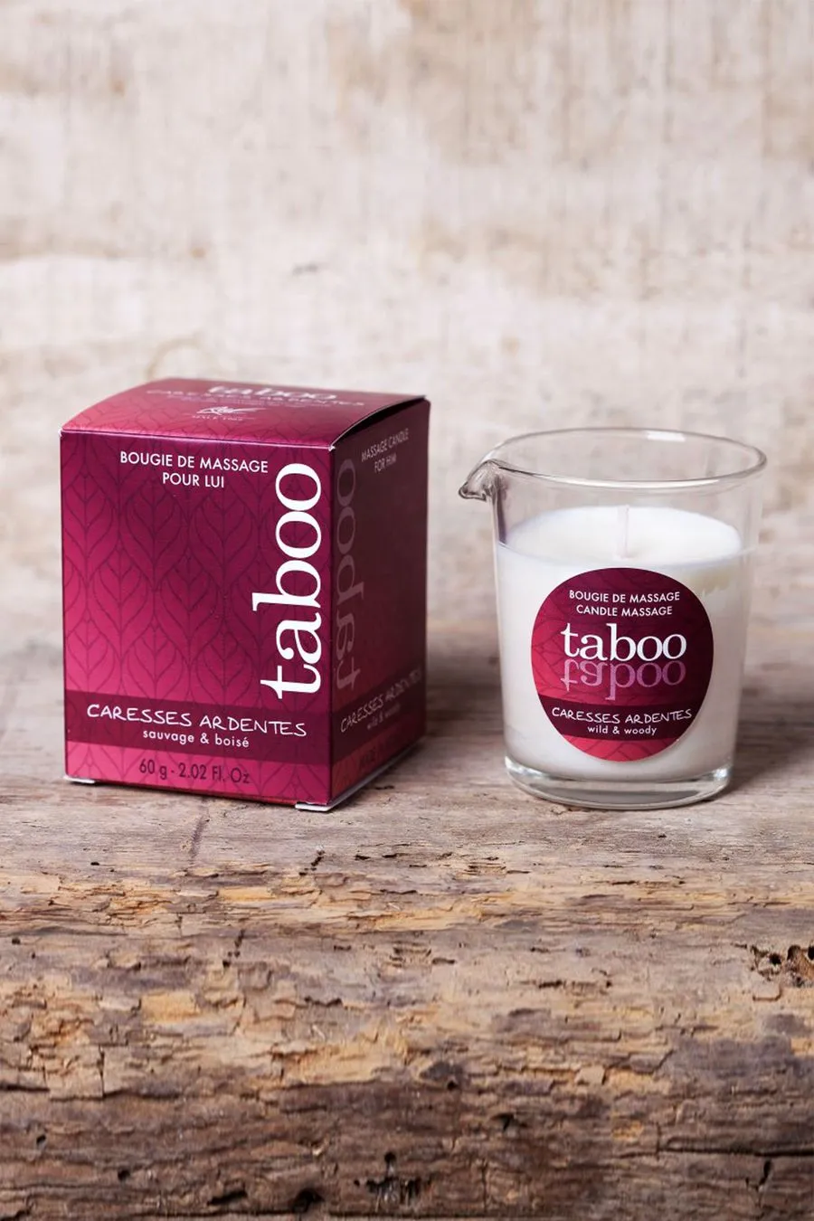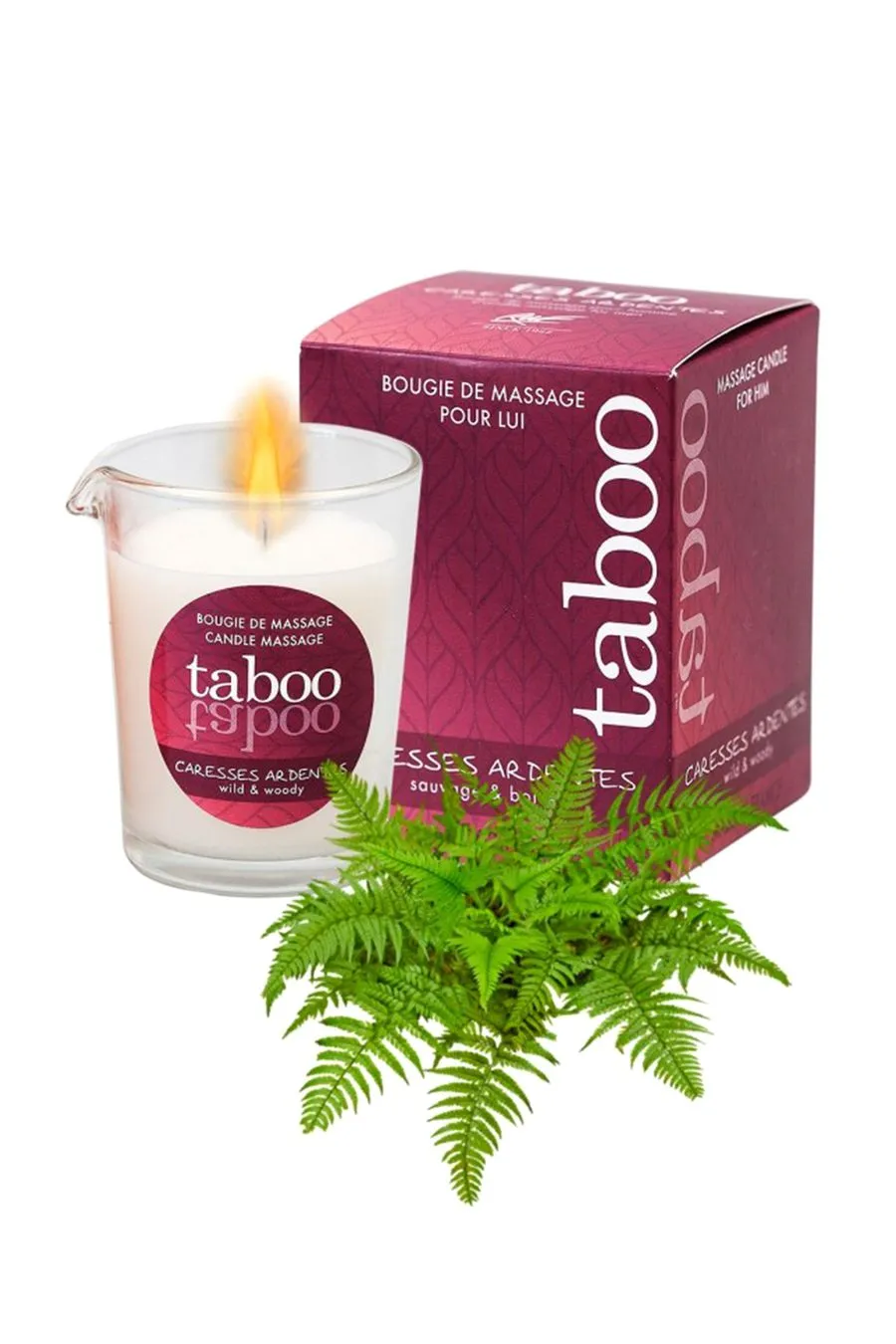 Taboo Caresses Ardentes не только пробуждает ваши чувства, но и обеспечивает глубокое расслабление благодаря натуральным ингредиентам, таким как соевое и кокосовое масла. Эти компоненты интенсивно питают и увлажняют кожу, оставляя её мягкой и шелковистой. Запах дикого папоротника наполняет атмосферу загадочными лесными нотами, создавая идеальные условия для погружения в интимные объятия.