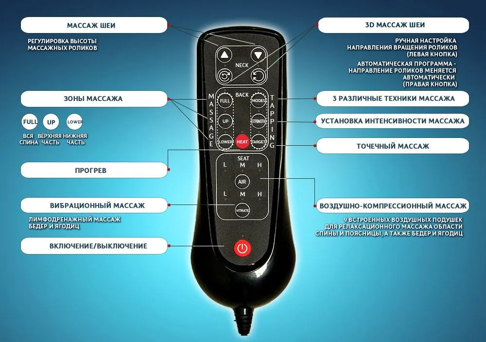 - Вибрационный массаж в сидении накидки.