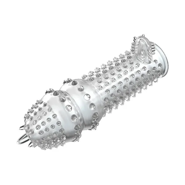 Насадка на фаллос с закрытой головкой, хорошо тянется. Поверхность с пупырышками и мини-усиками для усиления чувствительности эрогенных зон внутри влагалища. Способствует продлению времени сексуального контакта. Изменяющийся рельеф, мягкие шипы различной длины, небольшой отросток для стимуляции клитора.