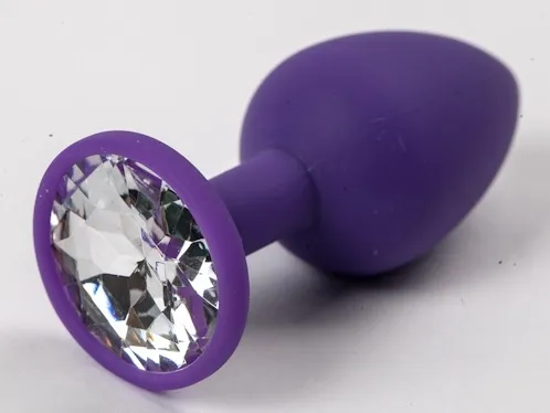 Фиолетовая анальная пробка с прозрачным стразом, вносит разнообразие в вашу интимную жизнь. Обладает конусной формой, что позволяет обеспечить легкое введение. Характеристика: общая длина- 7,5 см, рабочая длина- 7,1 см, диаметр- 2,8 см. Материал- силикон. Упаковка: бархатный мешок.