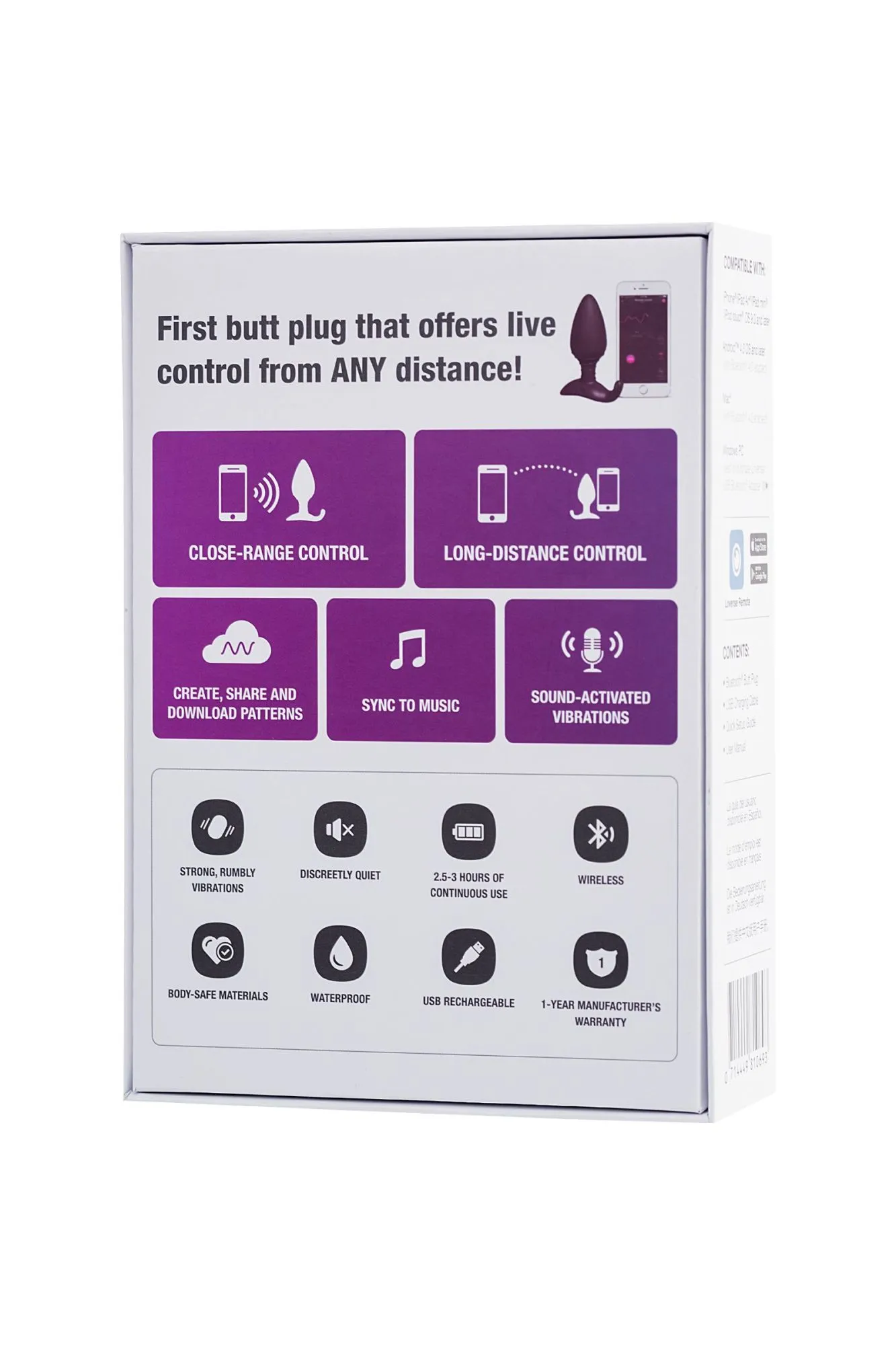 Испытайте непревзойденное удовольствие с вибрирующей анальной пробкой от Lovense Hush в размере L, обладающей уникальным управлением на расстоянии. Это несравненно универсальное устройство с обширным функционалом, созданное для начинающих и продвинутых ценителей анального удовольствия! Hush - это совершенно мощная анальная втулка, предлагающая невероятные вибрации. Предустановленные программы – 3 уровня мощности и 10 паттернов вибрации. Вы можете настроить интенсивность и режимы вибрации, соответствующие вашим индивидуальным предпочтениям. Погрузитесь в мир бесконечных возможностей, которые Hush предоставляет вам для разнообразных сексуальных игр и интимных моментов. Спираль на шейке не только задерживает смазку, делая извлечение легким даже после длительной игры! Ребристое основание дополнительно стимулирует чувствительную зону сфинктера. Шейка устройства исключает случайное выскальзывание во время использования. Обтекаемая форма имеет диаметр 4,4 см. Длина втулки 12,1 см. Ощутите свободу управления, ведь Hush может управляемой из любой точки мира через приложение Lovense Remote на вашем смартфоне. Технологические возможности достигают нового уровня благодаря этой инновационной функции: настраивайте мощность и создавайте собственные паттерны вибраций. Откройте для себя новые грани сексуальных игр и наслаждайтесь незабываемыми моментами с Hush. Основные преимущества Hush: Полностью программируемое устройство с управлением на расстоянии, который позволяет вам настроить вибрацию по своему вкусу и наслаждаться интенсивностью и ритмом стимуляции, отвечающим вашим желаниям. Разнообразные паттерны вибрации открывают перед вами мир неповторимых сексуальных ощущений и возможностей стимуляции.Управление кнопкой на корпусе или через приложение. Возможность синхронизации игрушки с музыкой или звуковой активацией позволяет вам наслаждаться интимными моментами, в соответствии с вашими музыкальными предпочтениями или звуками, вызывающими возбуждение. Hush изготовлена из безопасных для здоровья материалов, не содержит латекса, резины или фталатов, обеспечивая вам безопасное и комфортное использование. Водонепроницаемость IPX7 делает Hush идеальным выбором для использования в ванне или под душем, позволяя вам раскрыть новые грани удовольствия в водных пространствах. Hush имеет длительное время работы до 3,8 часов непрерывной игры, что позволяет вам наслаждаться моментами стимуляции без прерываний. Удобная USB-зарядка обеспечивает простоту зарядки игрушки, чтобы вы могли наслаждаться ею в любое время. Мешочек для хранения в комплекте