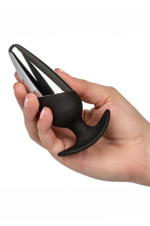 CalExotics Executive Plug – это эксклюзивная анальная пробка, выполненная из двойного материала. Она изготовлена из безопасного для тела силикона и сплава цинка, не содержащего никель.Идеальна для лёгкого введения, благодаря металлическому наконечнику, отличной стимуляции нервных окончаний анального прохода и сфинктера и такого же плавного извлечения.Пробка имеет изогнутое основание, что не только не дает ей провалиться внутрь, но и позволяет носить ее внутри тела и использовать во время полового акта.
