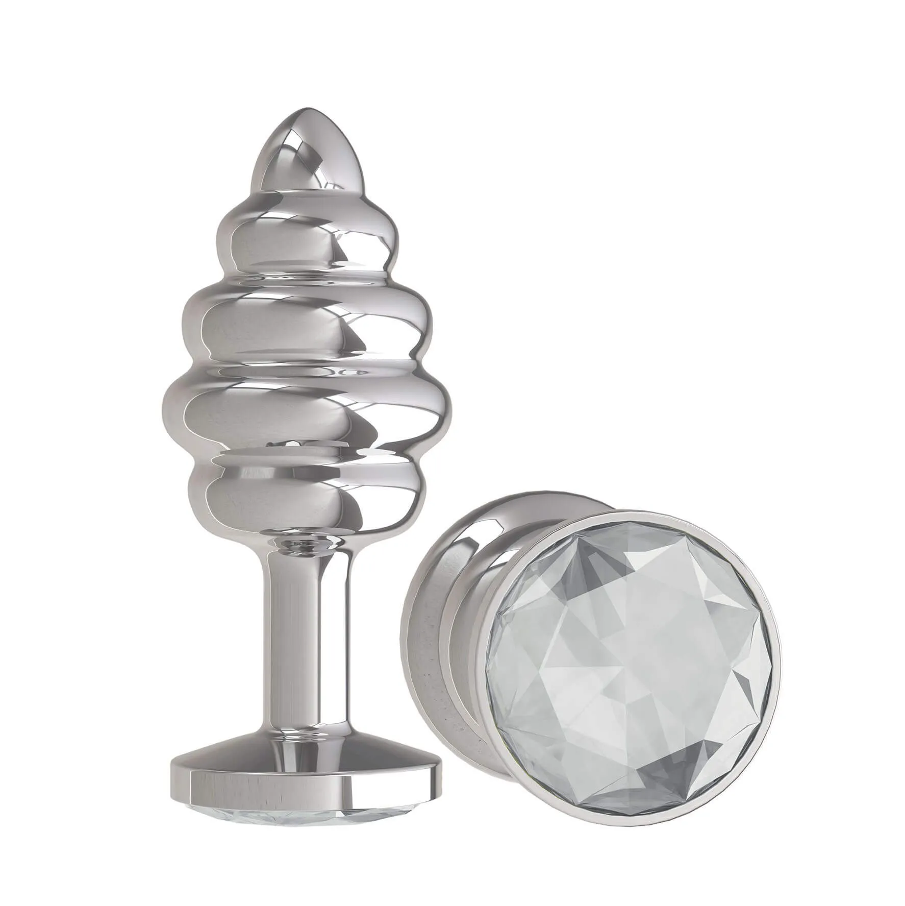 Анальная пробка Dжага Dжага Silver Spiral с прозрачным кристаллом