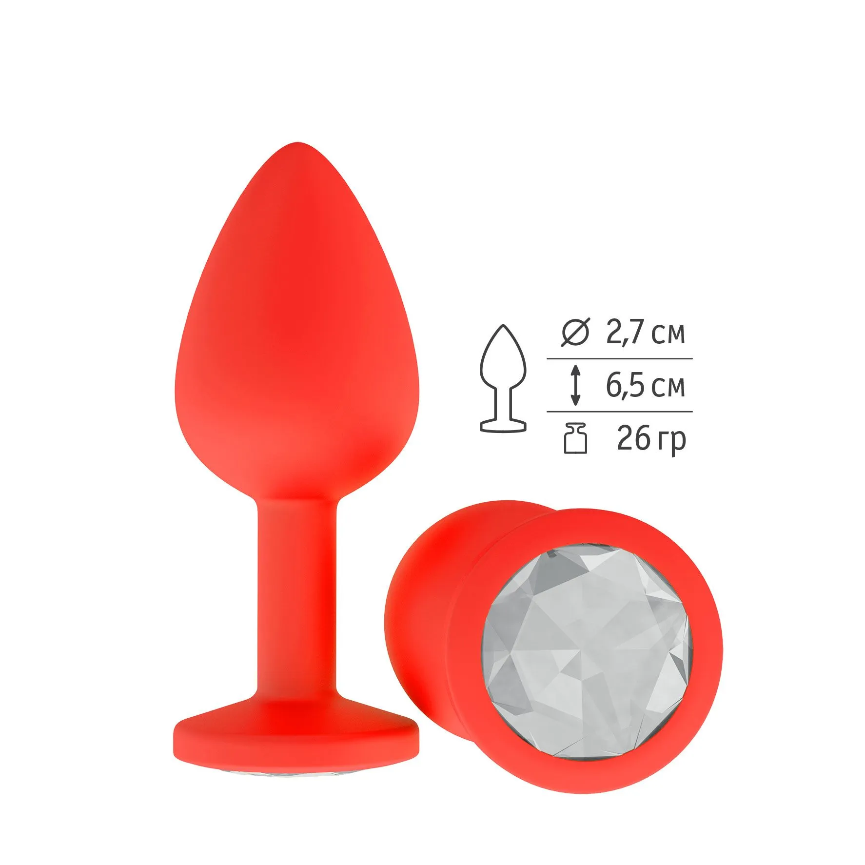 Пробка силиконовая красная с прозрачным кристаллом