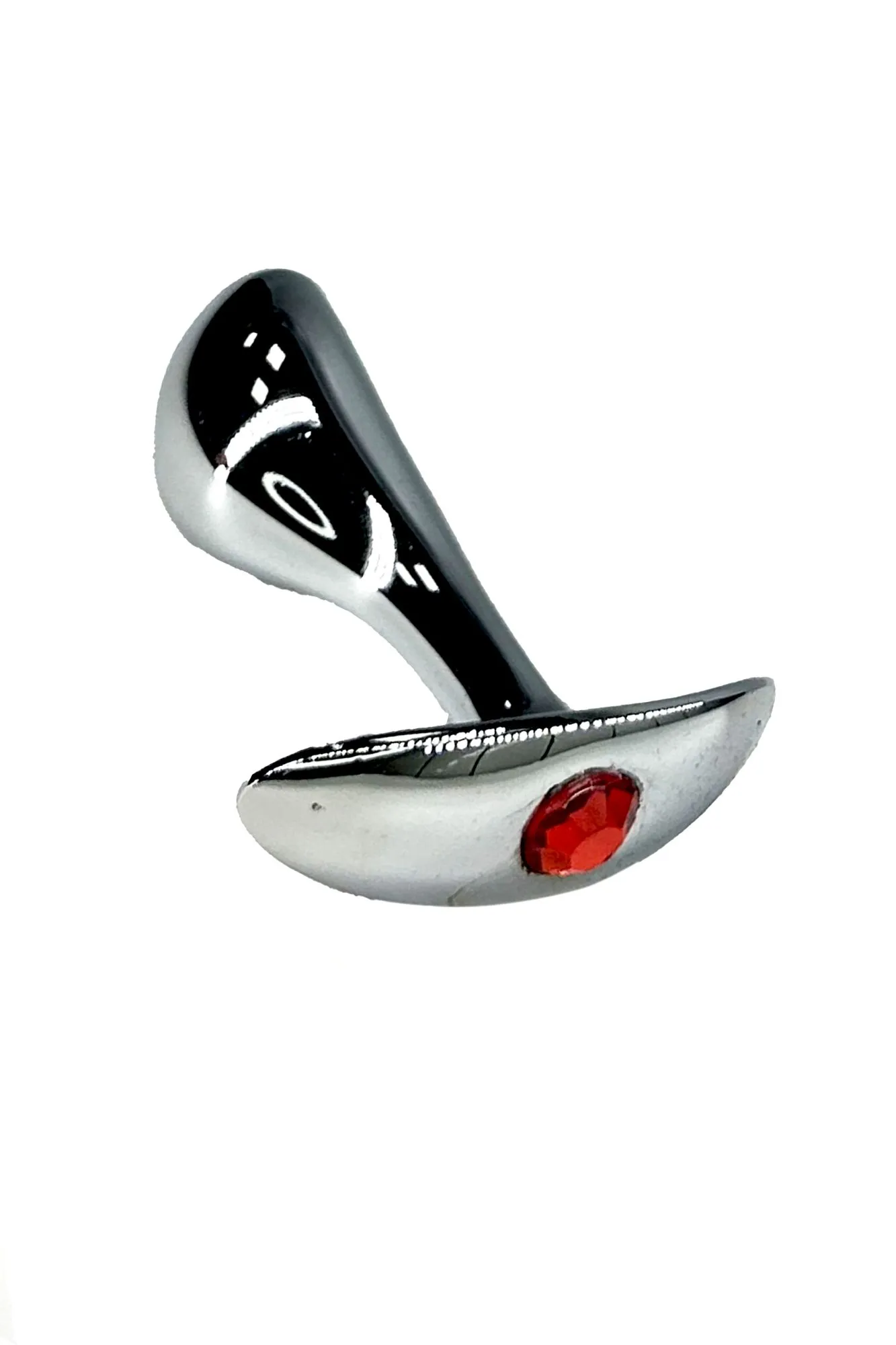 Литая анальная пробка имеет изогнутую каплевидную форму и гладкую фактуру шлифованного металла. Легкий и прочный алюминиевый сплав гарантирует долговечность и гигиеничность, а также абсолютную безопасность даже при постоянном ношении. Гладкий ограничитель украшен небольшим красным кристаллом.