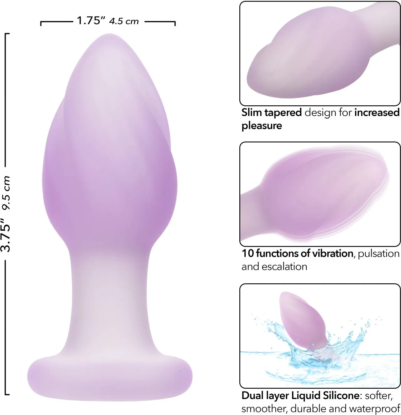 Изготовленный из двухслойного жидкого силикона, этот девайс не только ощущается более мягким и гладким на вашей коже, но также отличается высокой прочностью и полностью водонепроницаемостью. Кроме того, его современный чип памяти запоминает вашу последнюю использованную функцию, позволяя без усилий продолжить ваше приятное путешествие. Функция блокировки безопасности для путешествий гарантирует, что ваши приключения будут столь же незаметными, сколь и захватывающими. Пробка заряжается через USB. Полная зарядка занимает всего 2,5 часа, предлагая вам 30 минут высокоскоростной интенсивности или 90 минут продолжительного удовольствия на более низкой скорости.